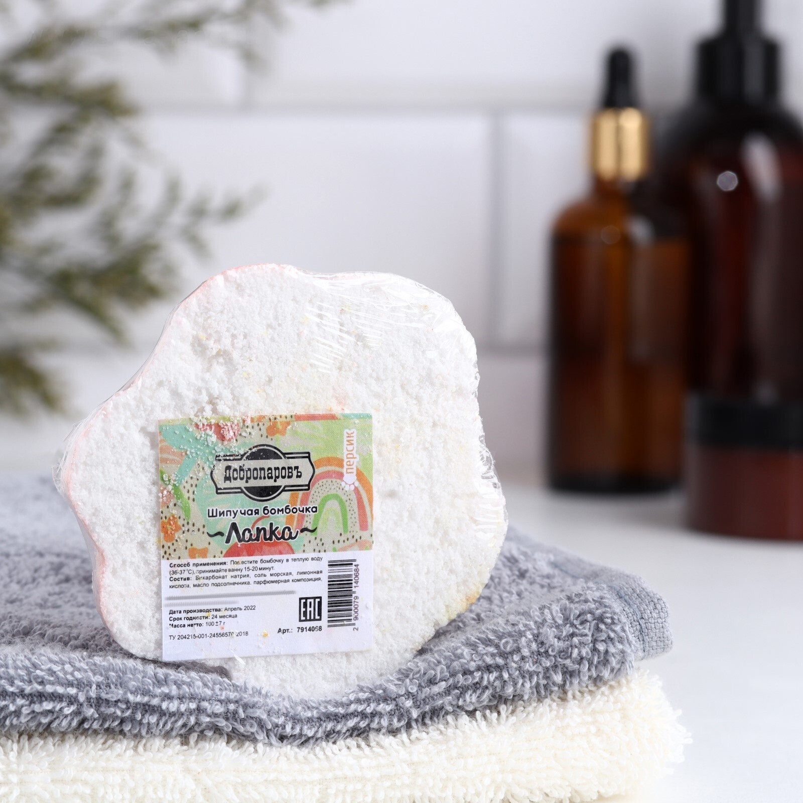 Шипучая бомбочка "Лапка" 100 гр "Добропаровъ" аромат персик
