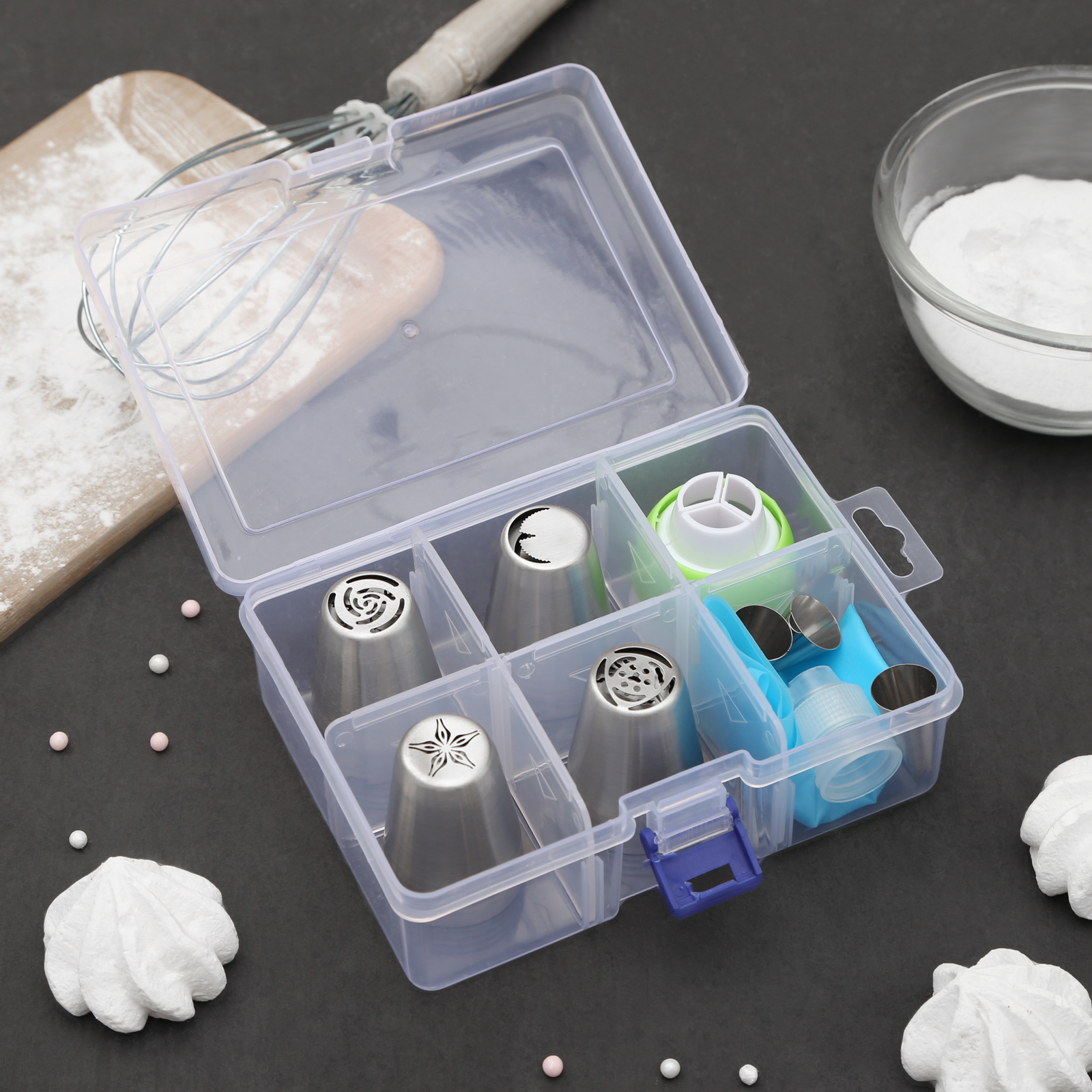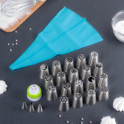 Набор кондитерский, 25 предметов в кейсе: 22 насадки d=3,7/2 см, 1 адаптер, мешок 30×15 см, насадки МИКС