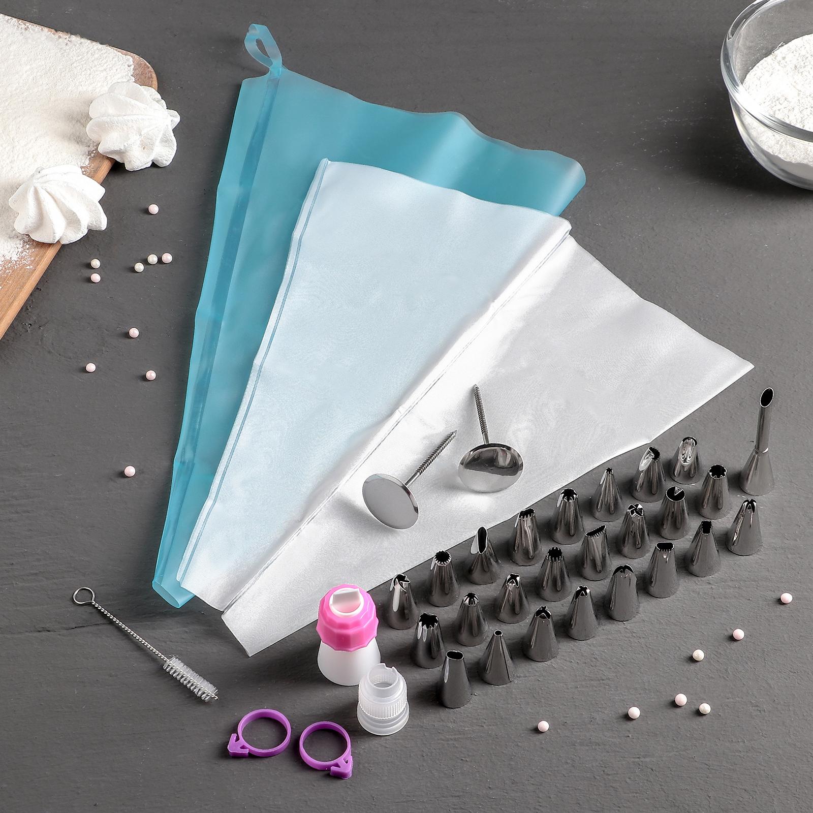 Набор кондитерский, 34 предмета: 26 насадок d=1,7, h=3 см, 2 адаптера, 2 гвоздя 3×6,5, 2 зажима