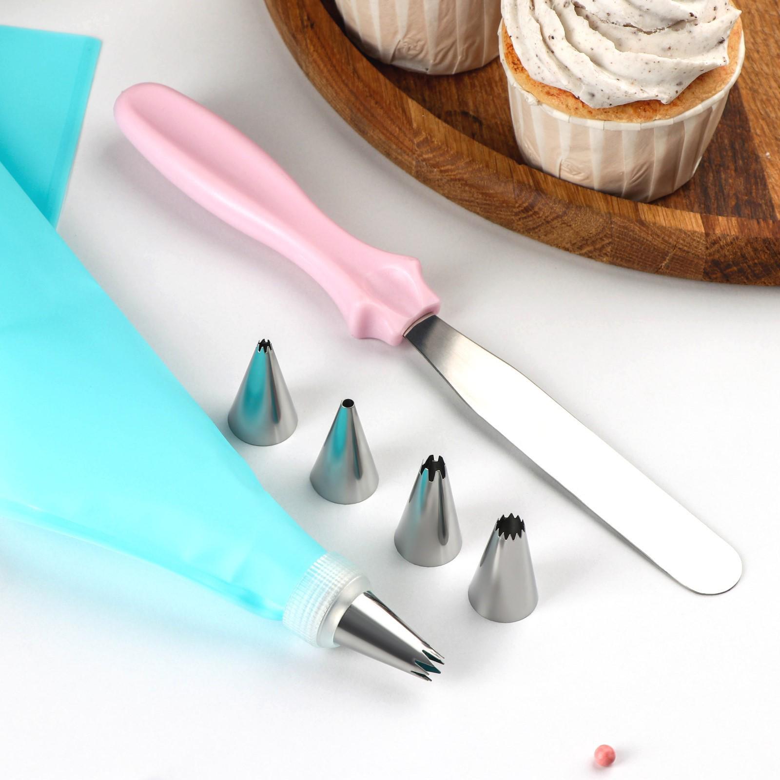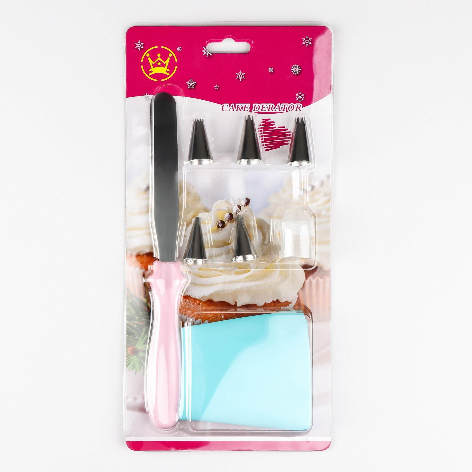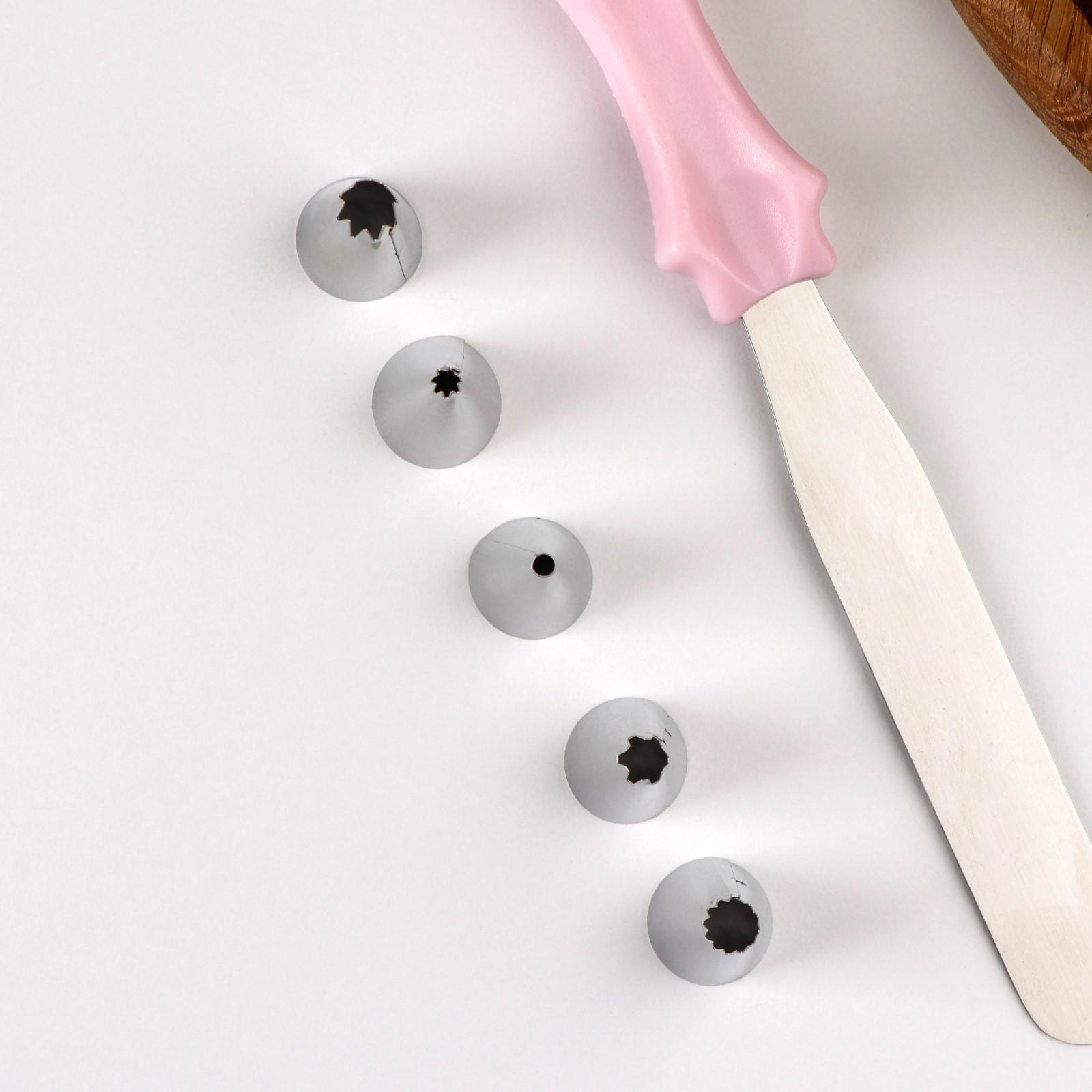 Набор кондитерский, 8 предметов: насадки 5 шт, адаптер, мешок, шпатель, насадки, цвет МИКС