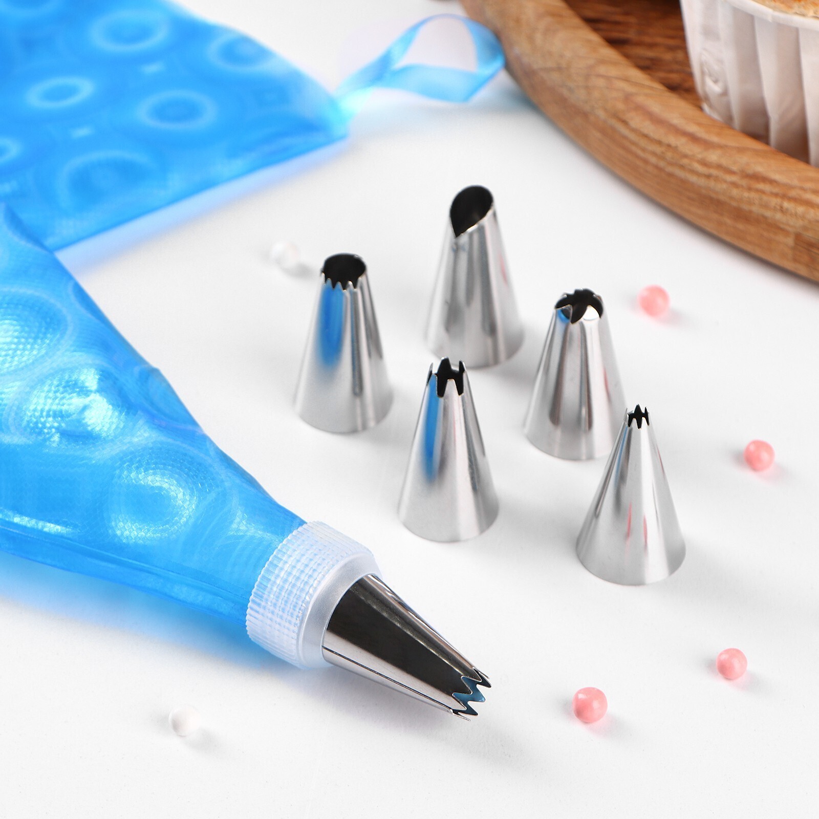 Набор кондитерский Доляна «Хоста», 8 предметов: мешок кондитерский 31×17 см, 6 насадок