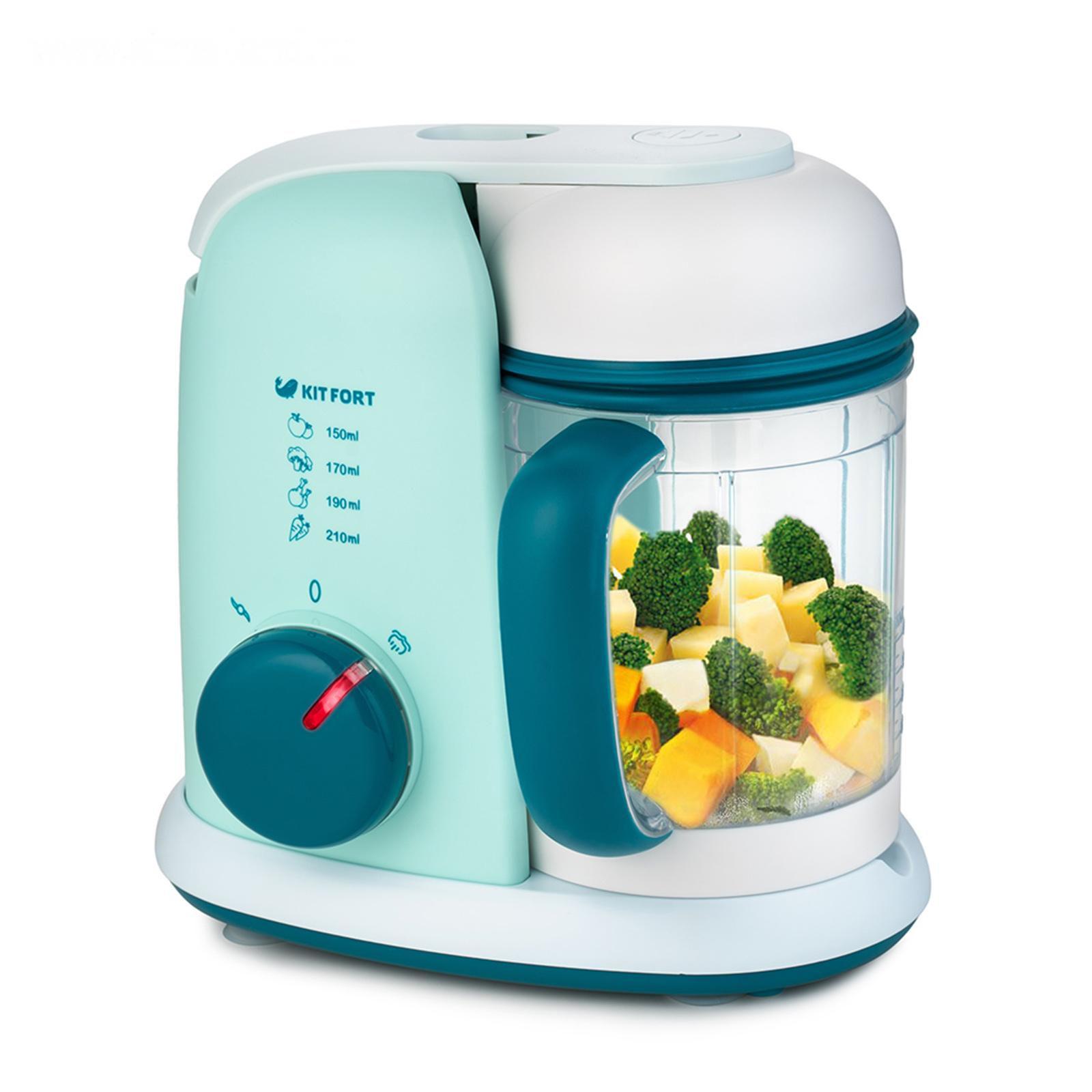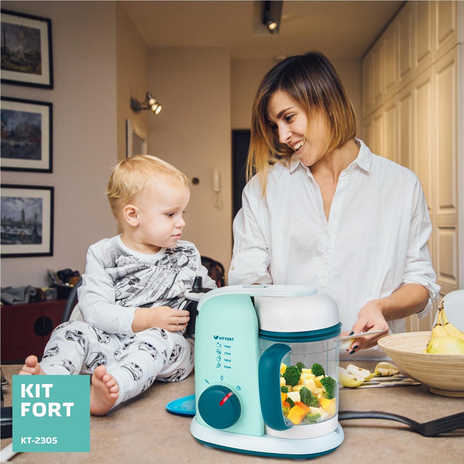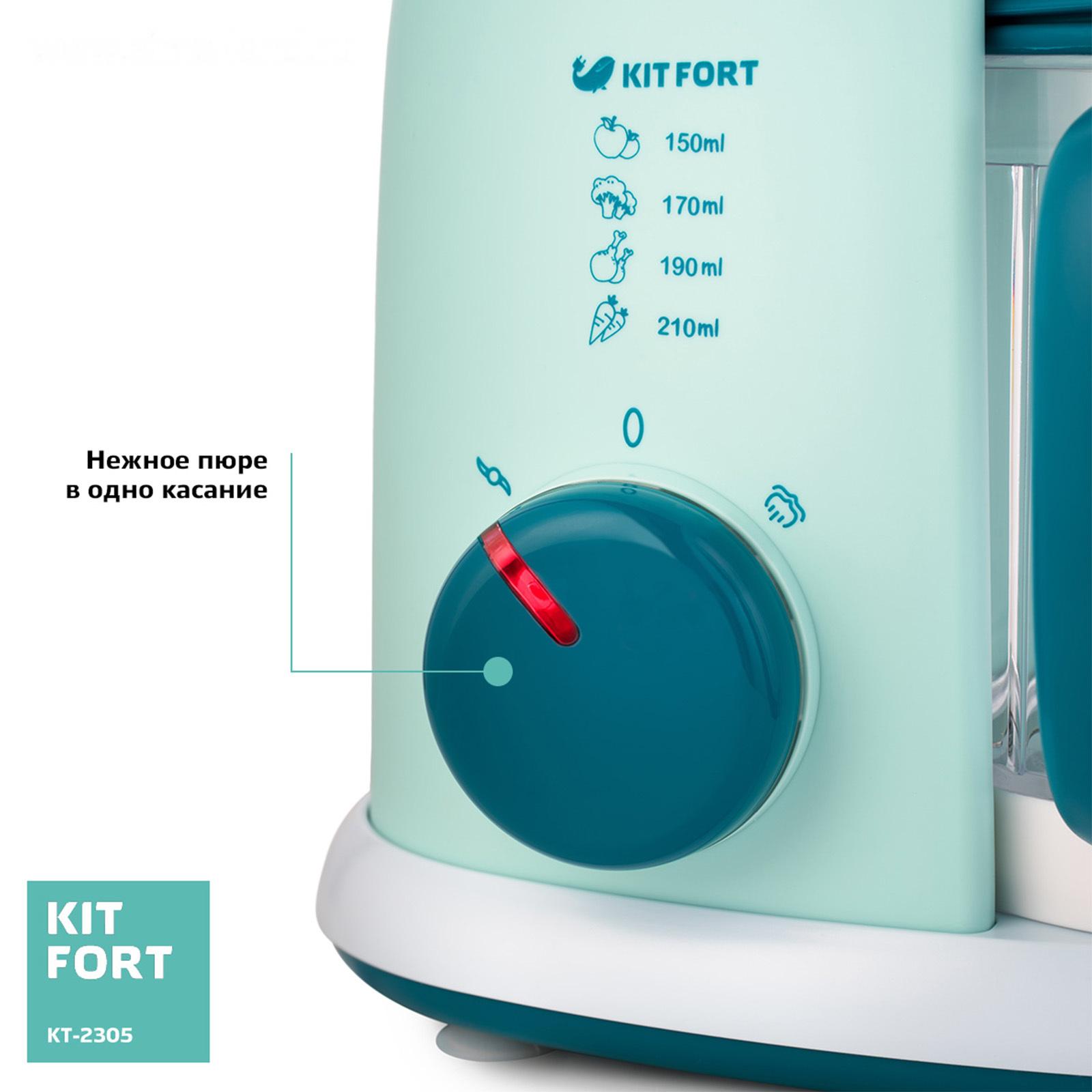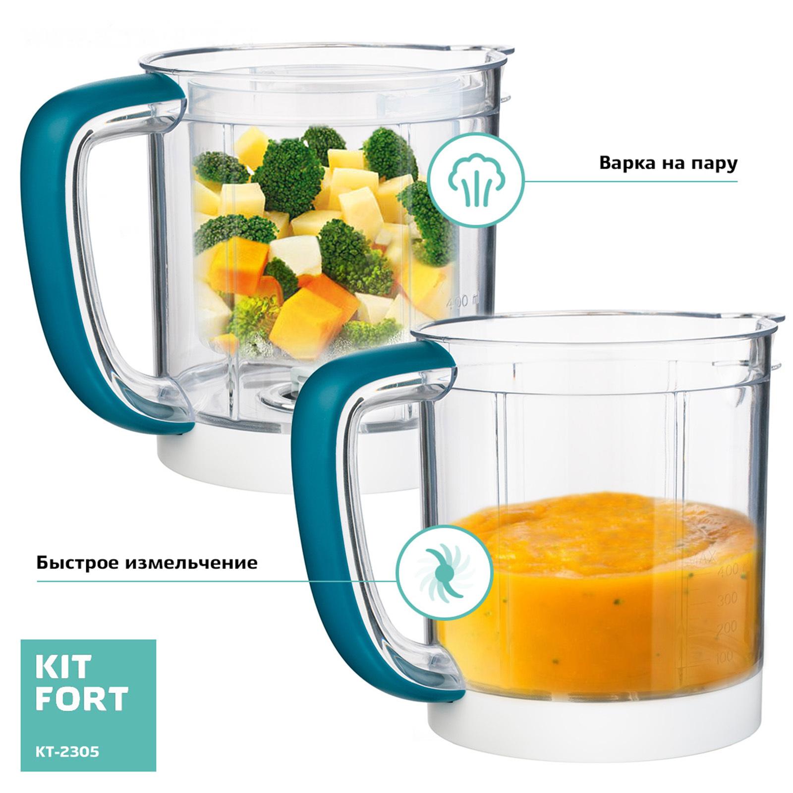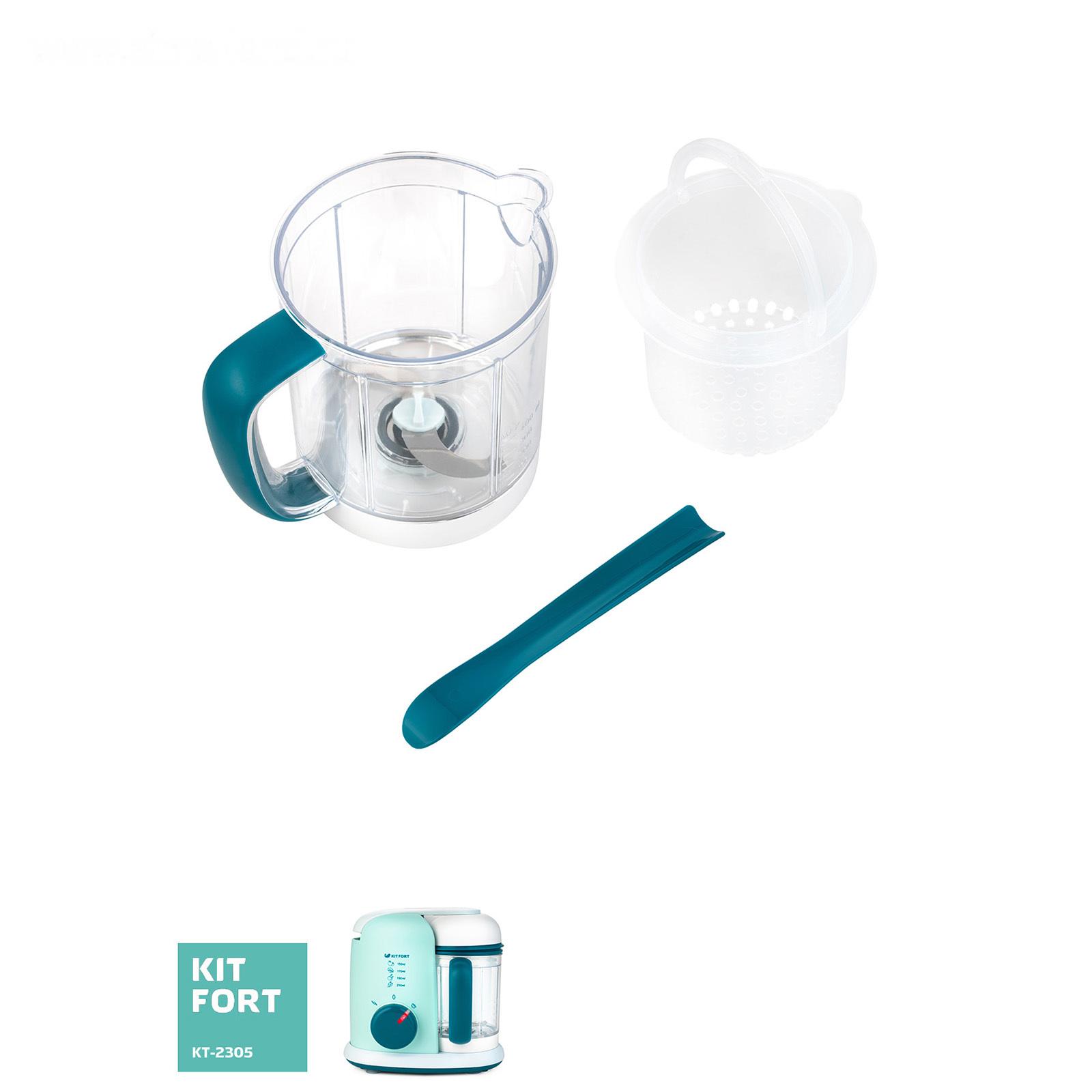 Блендер-пароварка Kitfort КТ-2305, электрическая, 400 Вт, 0.23 л, бело-голубая