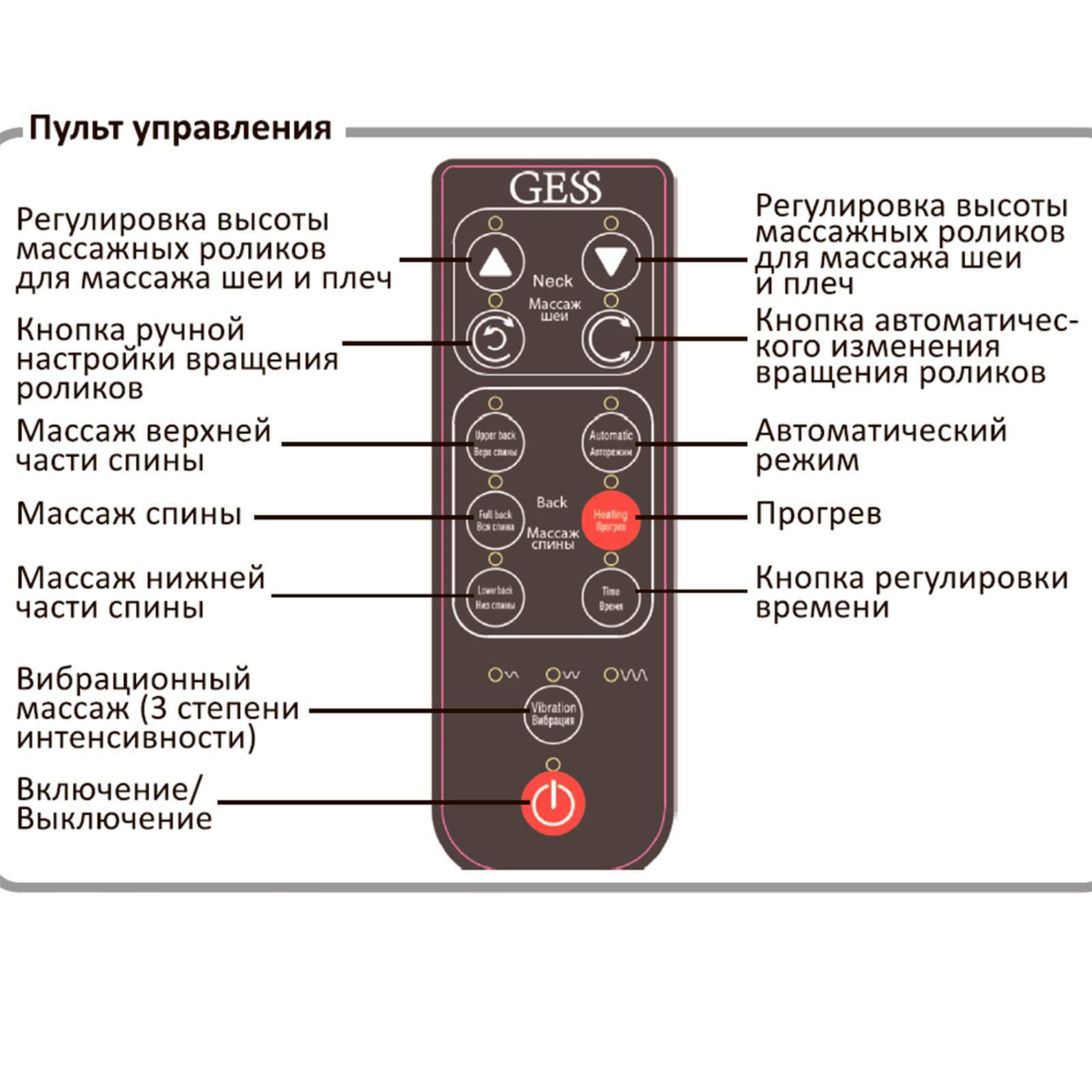 Массажная накидка GESS-632 Body Care PLUS, 60 Вт, 3 режима, 8 роликов, ИК-подогрев, таймер