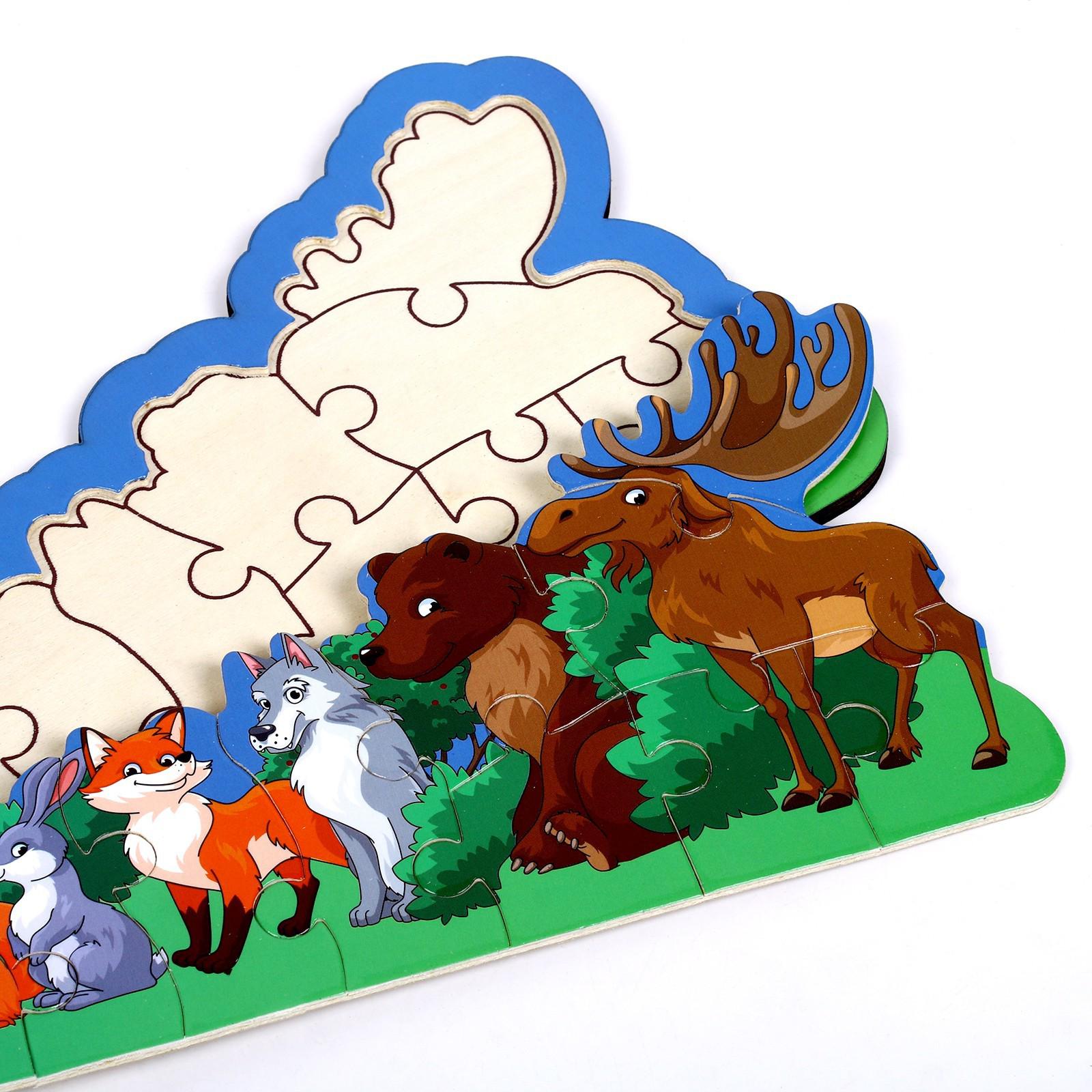 Пазл представляет собой игру-головоломку, в которой необходимо составить картинку из 11-ти элементов. В качестве подсказки ребёнок может использовать контур на вкладке.