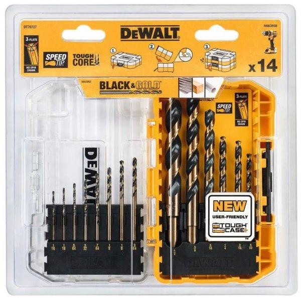 Набір свердл DeWALT по металу Black&Gold HSS-G, 14 шт, кейс Tough Case (DT70727)