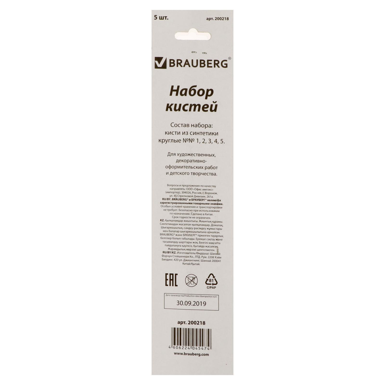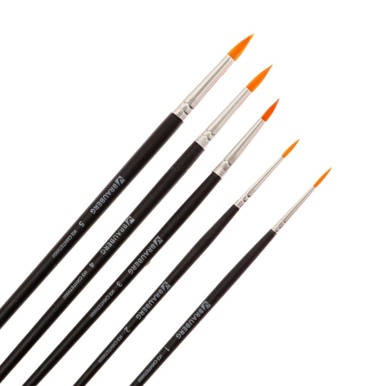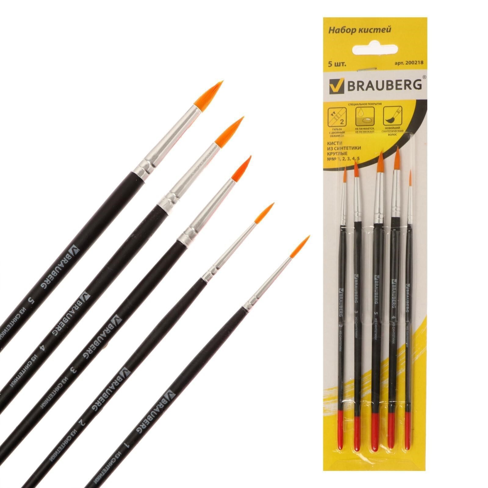 Набор кистей, синтетика, 5 штук, BRAUBERG (круглая, № 1, 2, 3, 4, 5), блистер