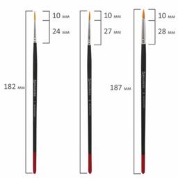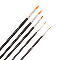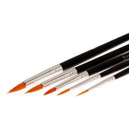 Кисти из синтетических волокон отлично впитывают и отдают краску, хорошо держат форму, долговечны и надежны. Кисти №1, 2, 3 подходят для проработки мелких деталей. Кисти №4 и №5 позволят прорисовывать более крупные детали и наносить широкие мазки и линии. Деревянную крашеную рукоятку кисти удобно держать в руке.