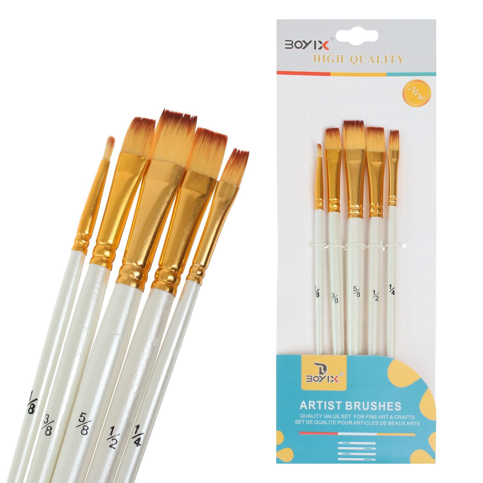 Набор кистей синтетика плоские 5 штук (№1/8,3/8,5/8,1/2,1/4), в блистере