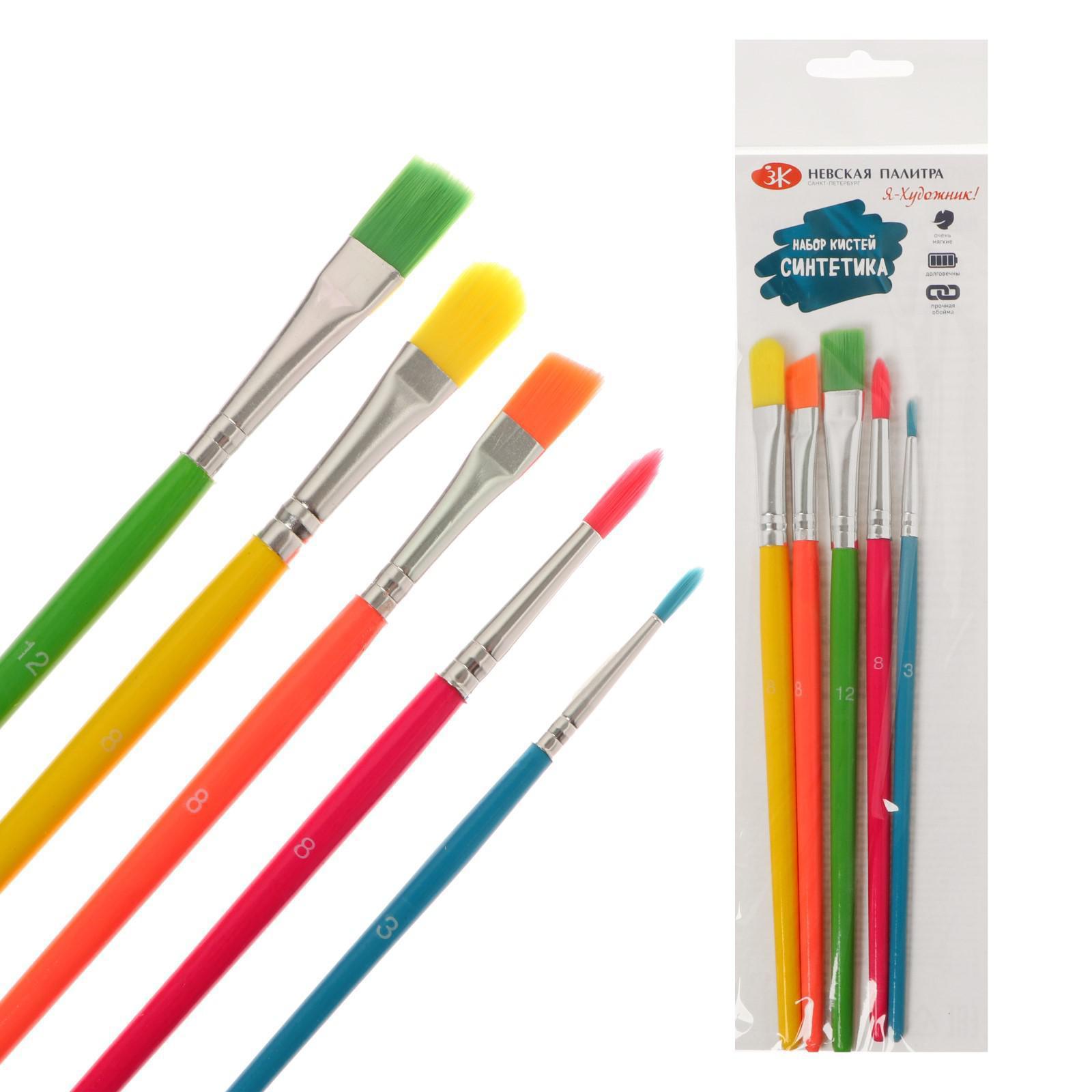 Набор кистей Синтетика 5 штук ЗХК "Я - Художник!" (круглые №:3,8; плоская №12; скошенная №8; плоская №8)
