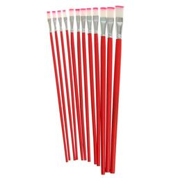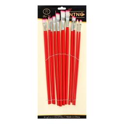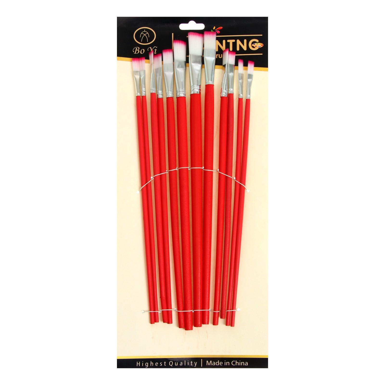 Набор кистей нейлон, плоские, 12 штук (№1, 2, 3, 4, 5, 6, 7, 8, 9, 10, 11, 12) с деревянными ручками