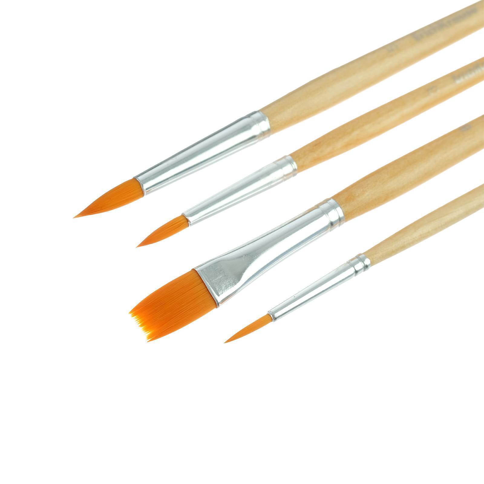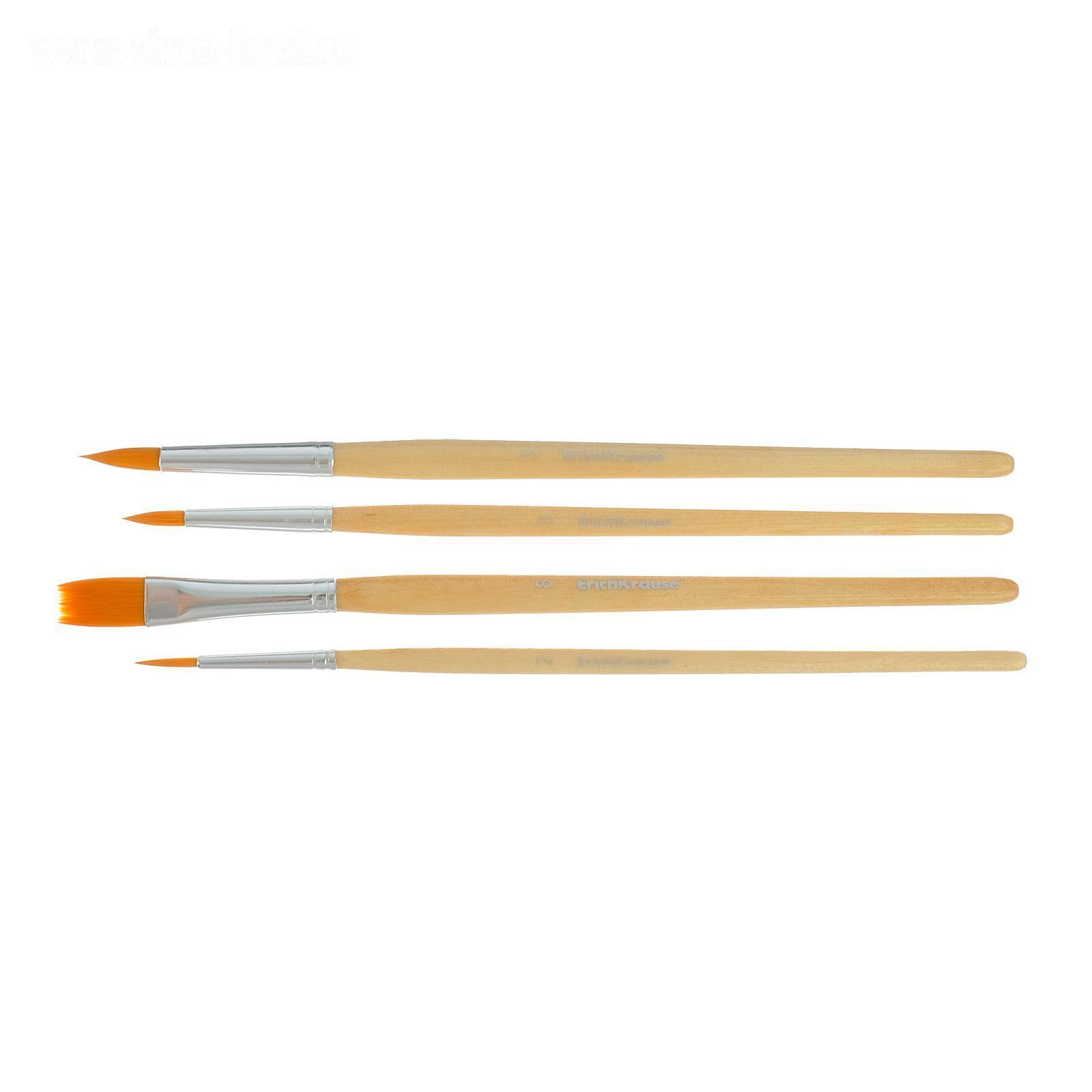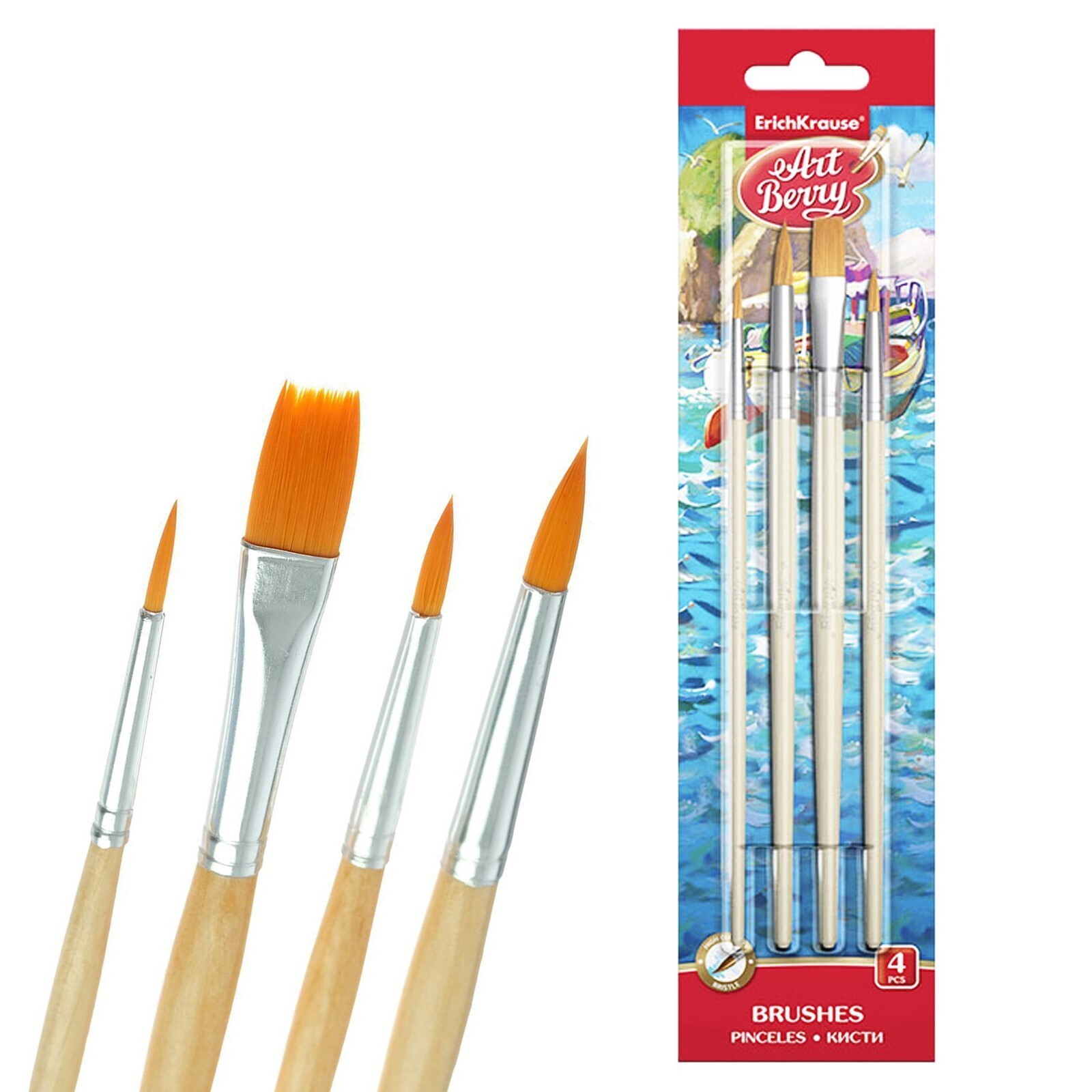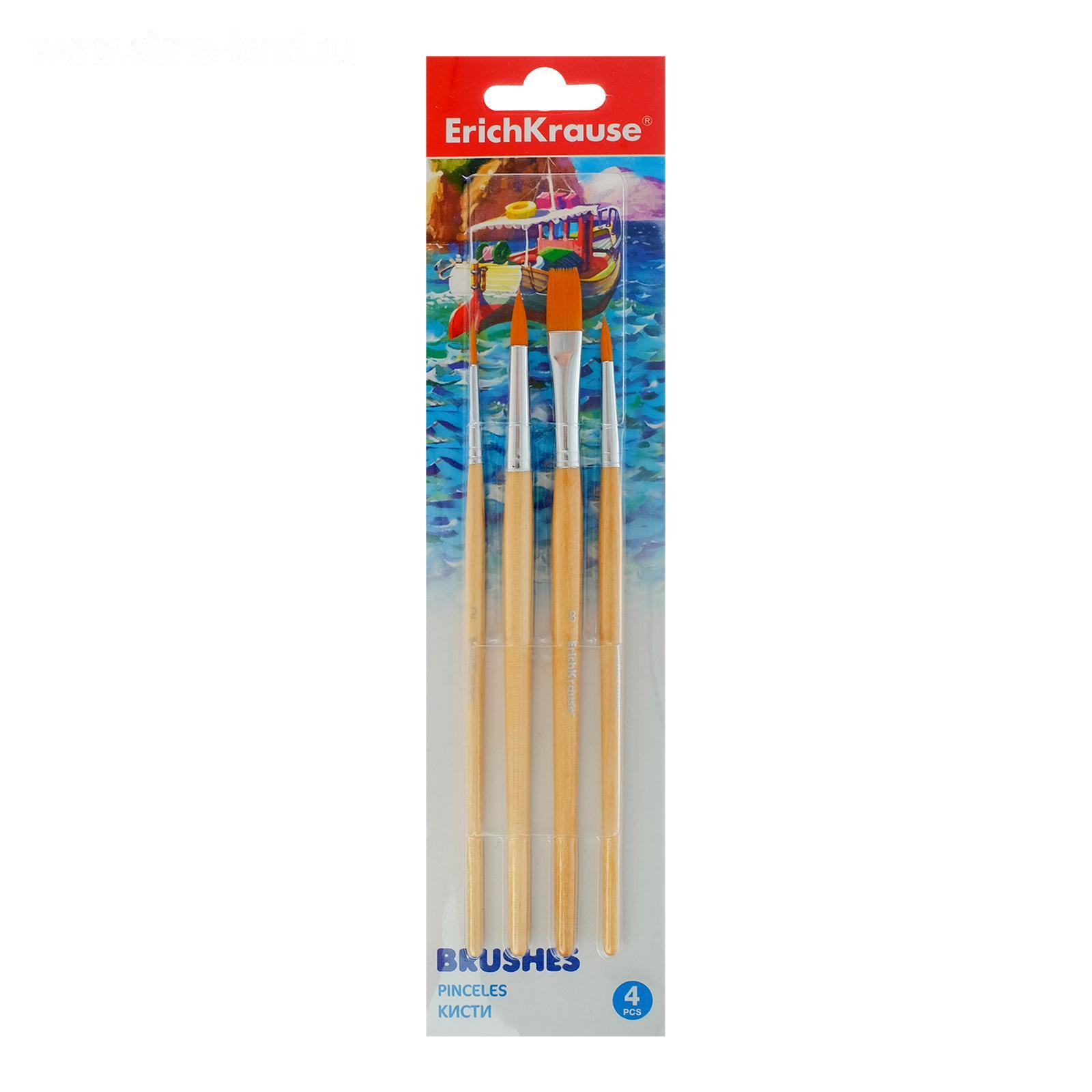 Набор кистей, синтетика, 4 штуки, Erich Krause, круглые, № 2, 3, 5, плоская, №8, для акварели и гуаши, в блистере
