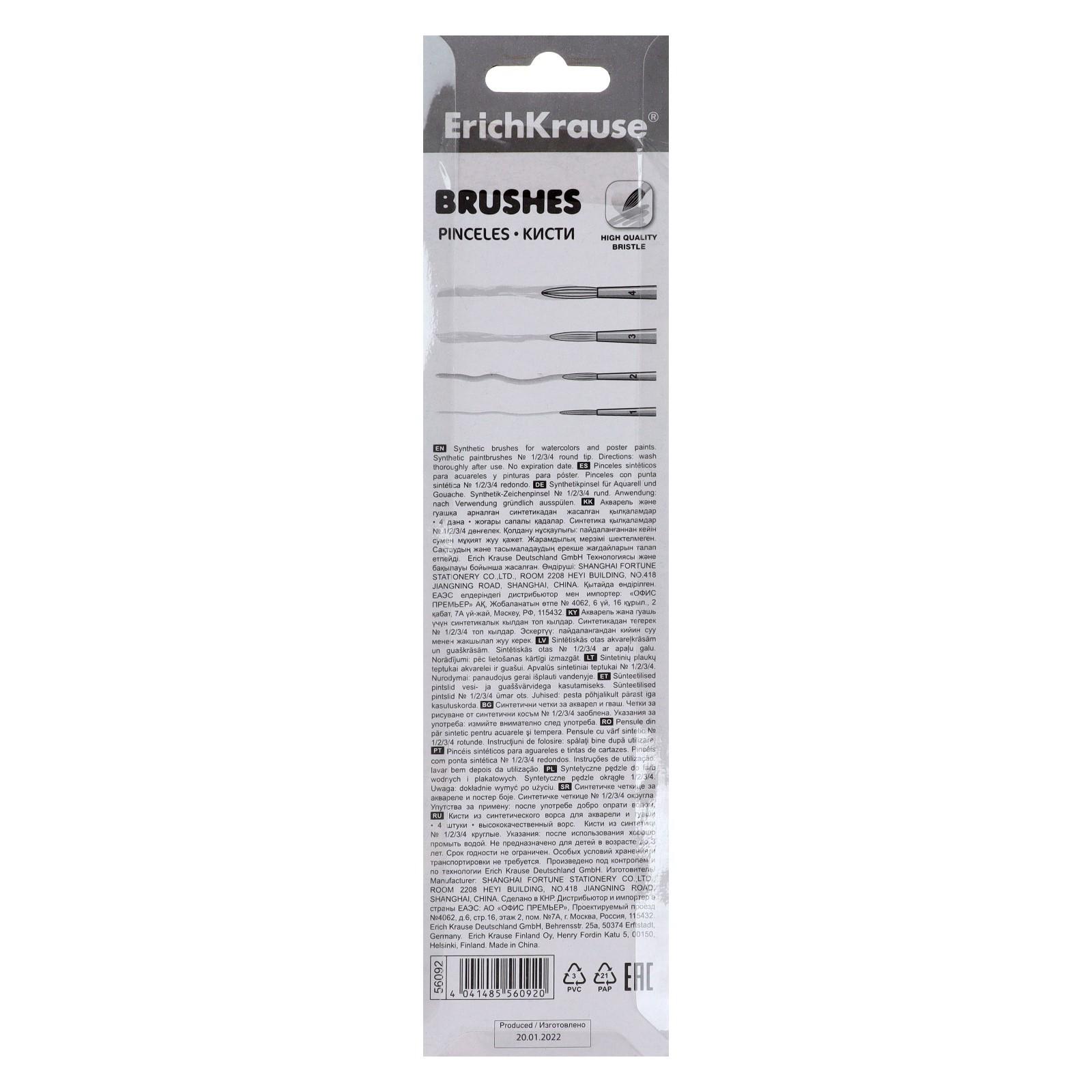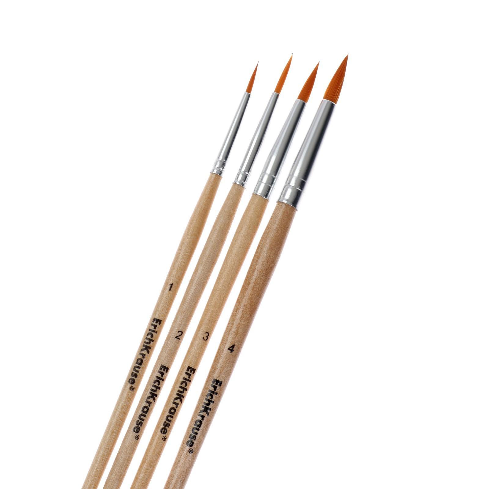Набор кистей, синтетика, 4 штуки, ErichKrause для акварели и гуаши, блистер