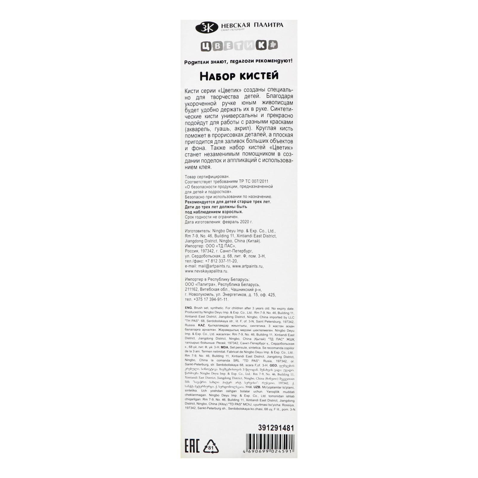 Набор кистей Синтетика 2 штуки ЗХК "Цветик" (круглая d-7мм; плоская b-18мм)