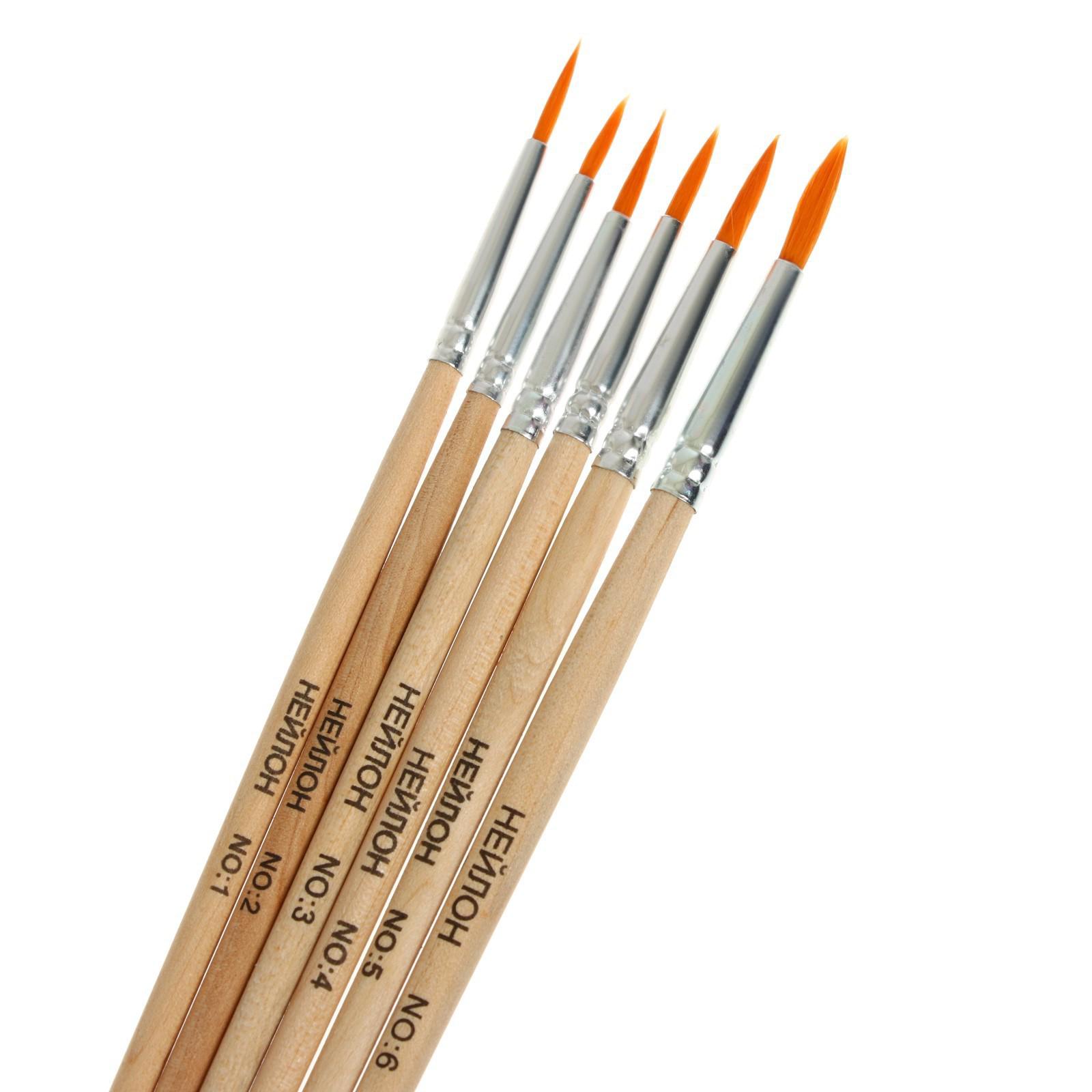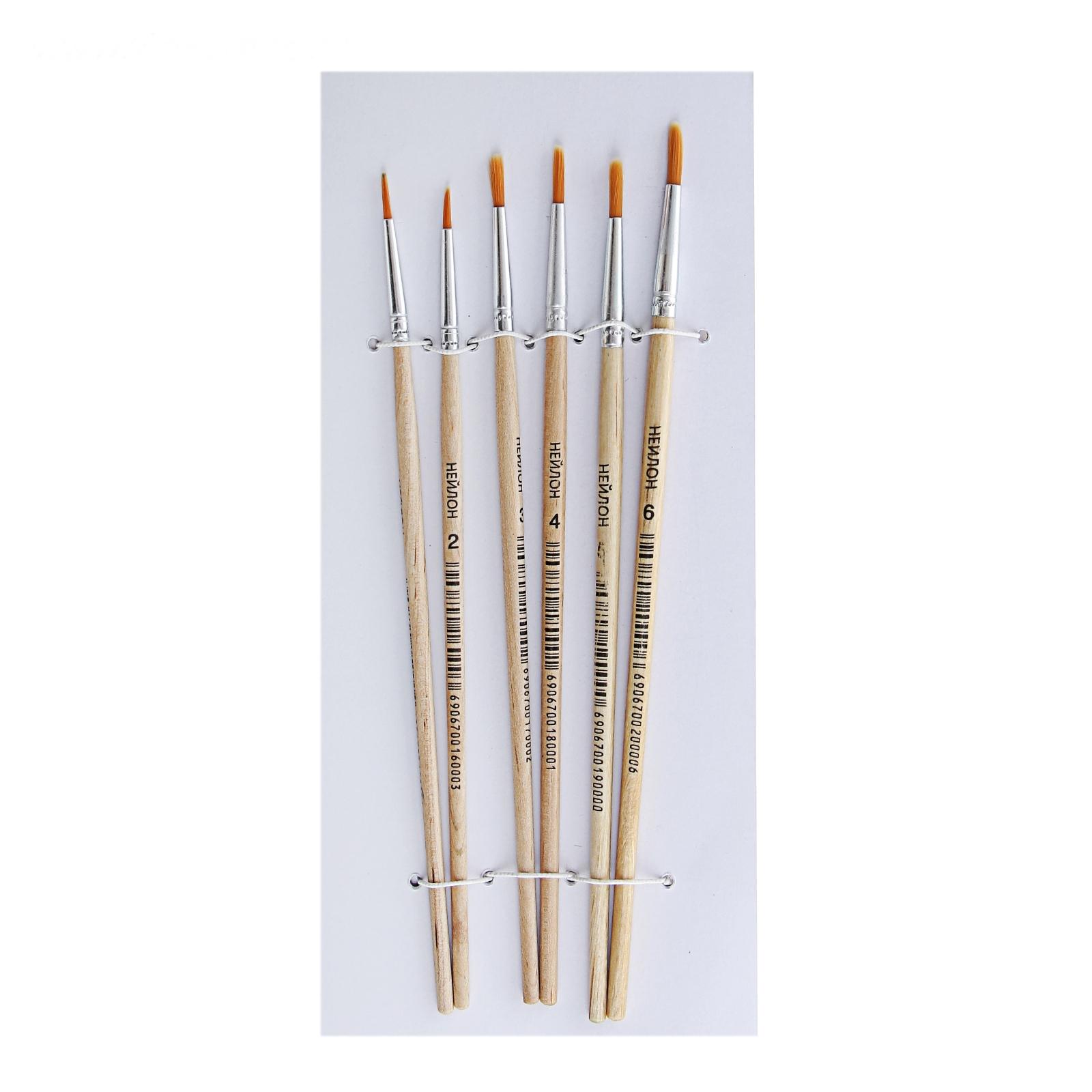 Набор кистей нейлон 6 штук: №1, 2, 3, 4, 5, 6, круглые