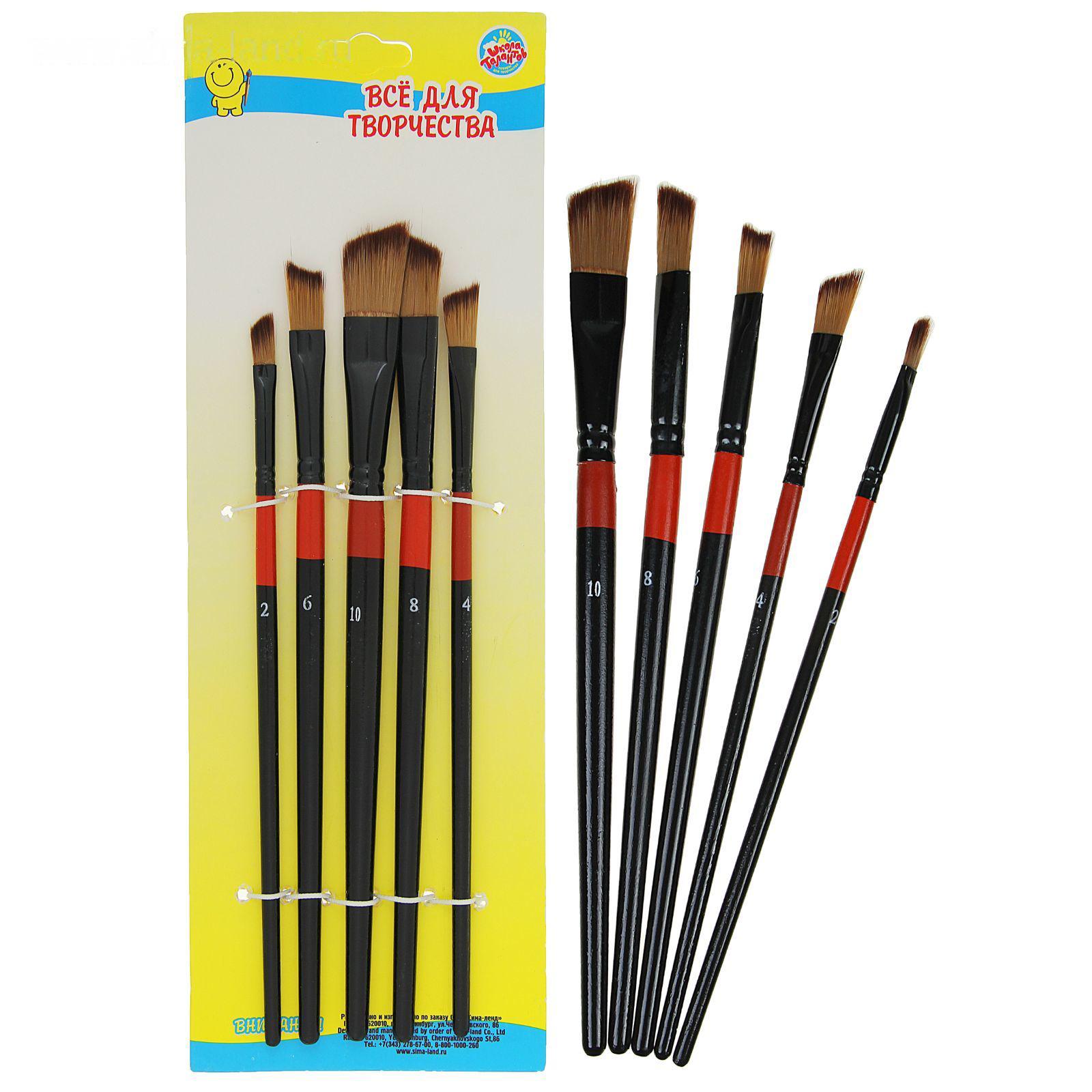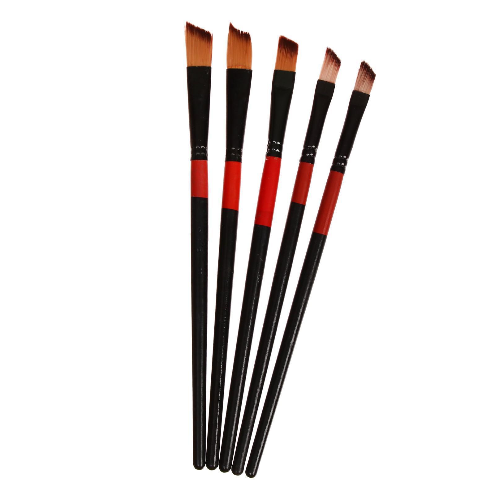 Набор кистей, нейлон, плоские, 5 штук, скошенные