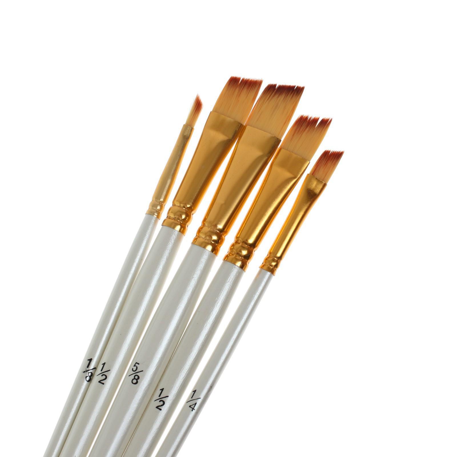 Набор кистей синтетика плоские 5 штук (№1/8,3/8,5/8,1/2,1/4), скошенные, в блистере