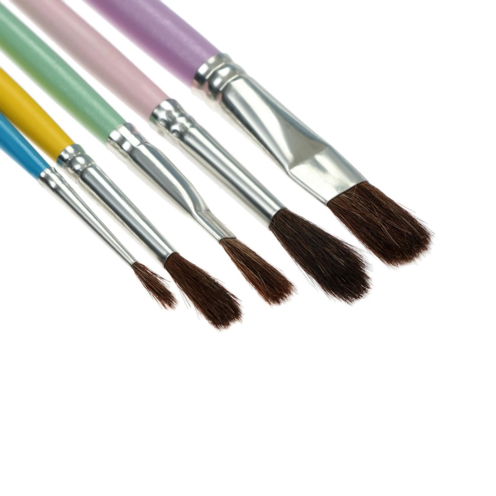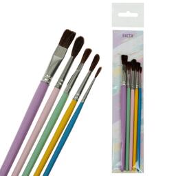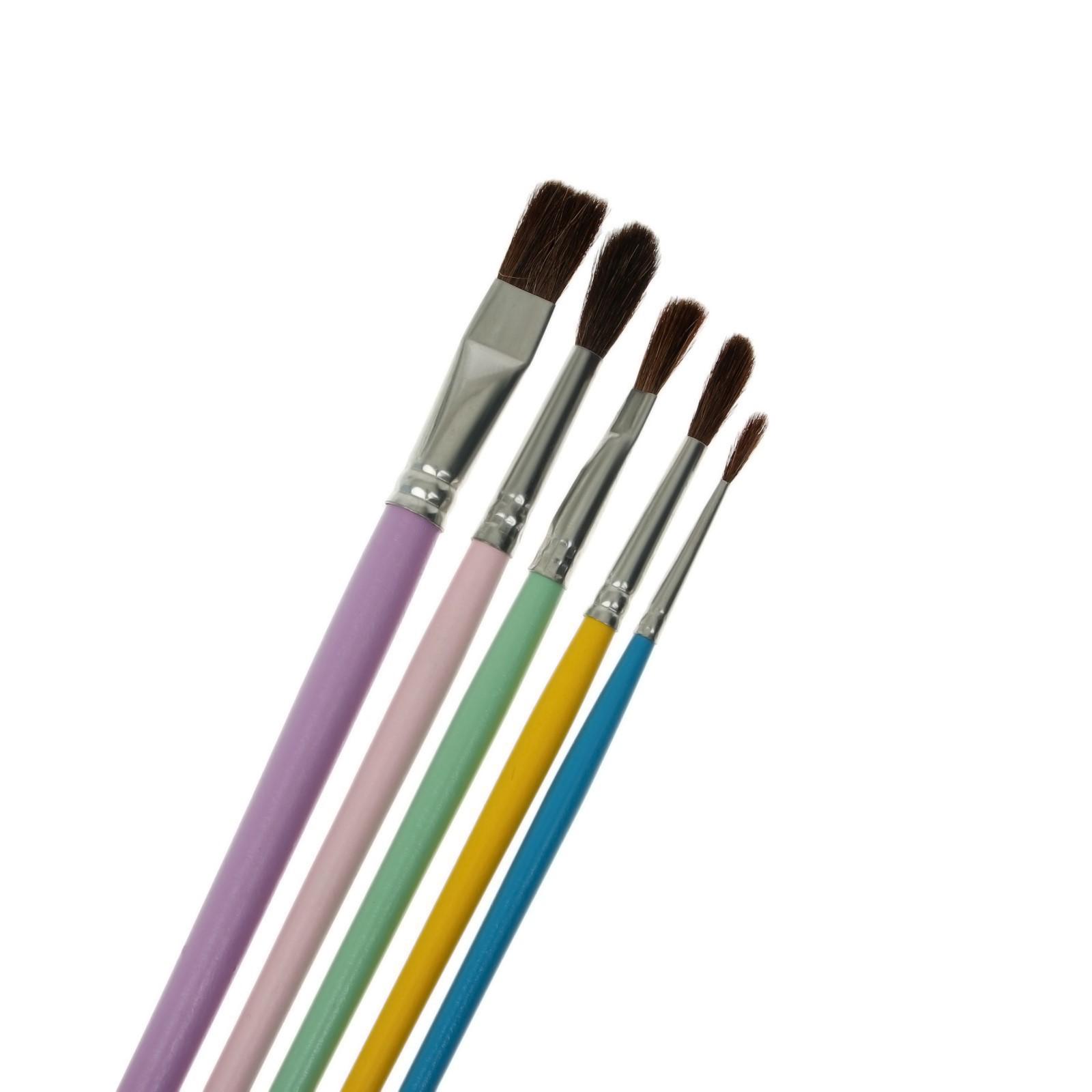 Набор кистей Пони 5 штук Calligrata №8 (круглые №: 1, 3, 5; плоск №: 6, 10), пастельный цвет ручки