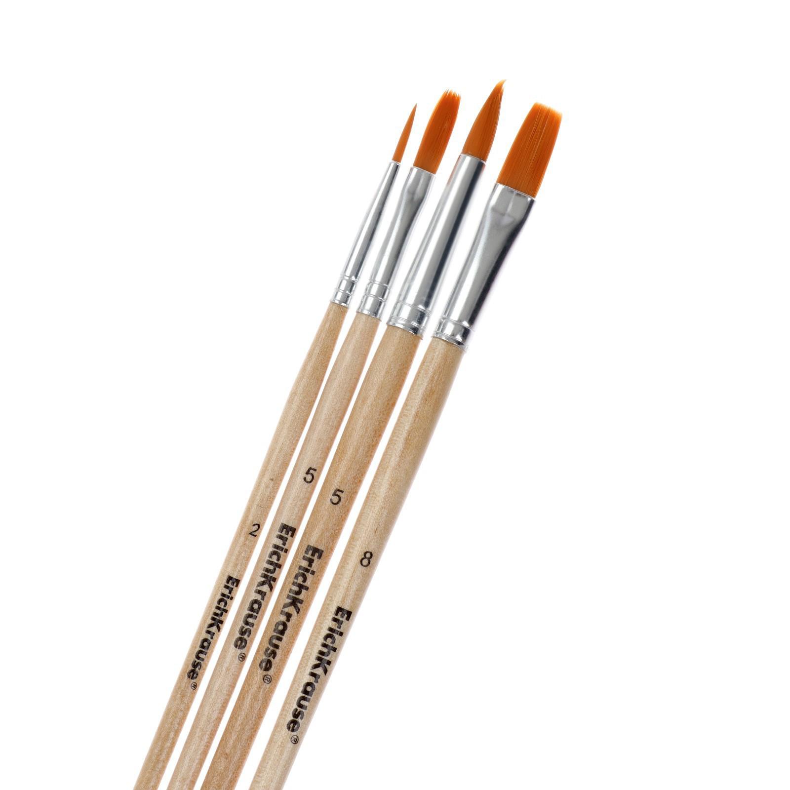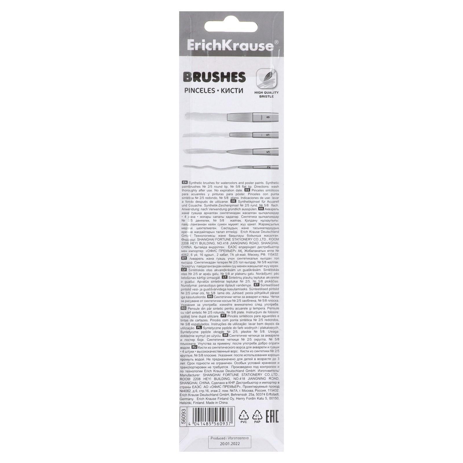 Набор кистей, пони, 4 штуки, ErichKrause для акварели и гуаши, блистер