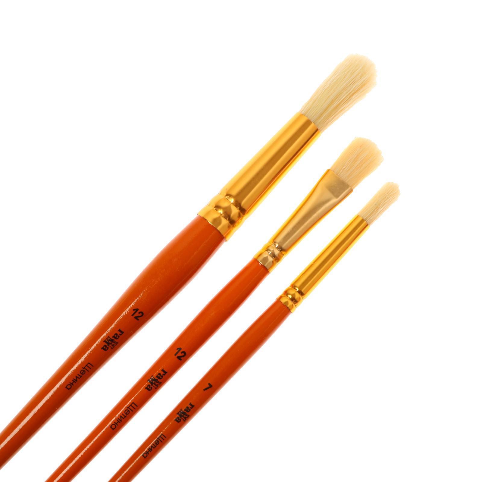 Набор кистей "Щетина", 3 штуки круглые № 7, 12, плоская №12