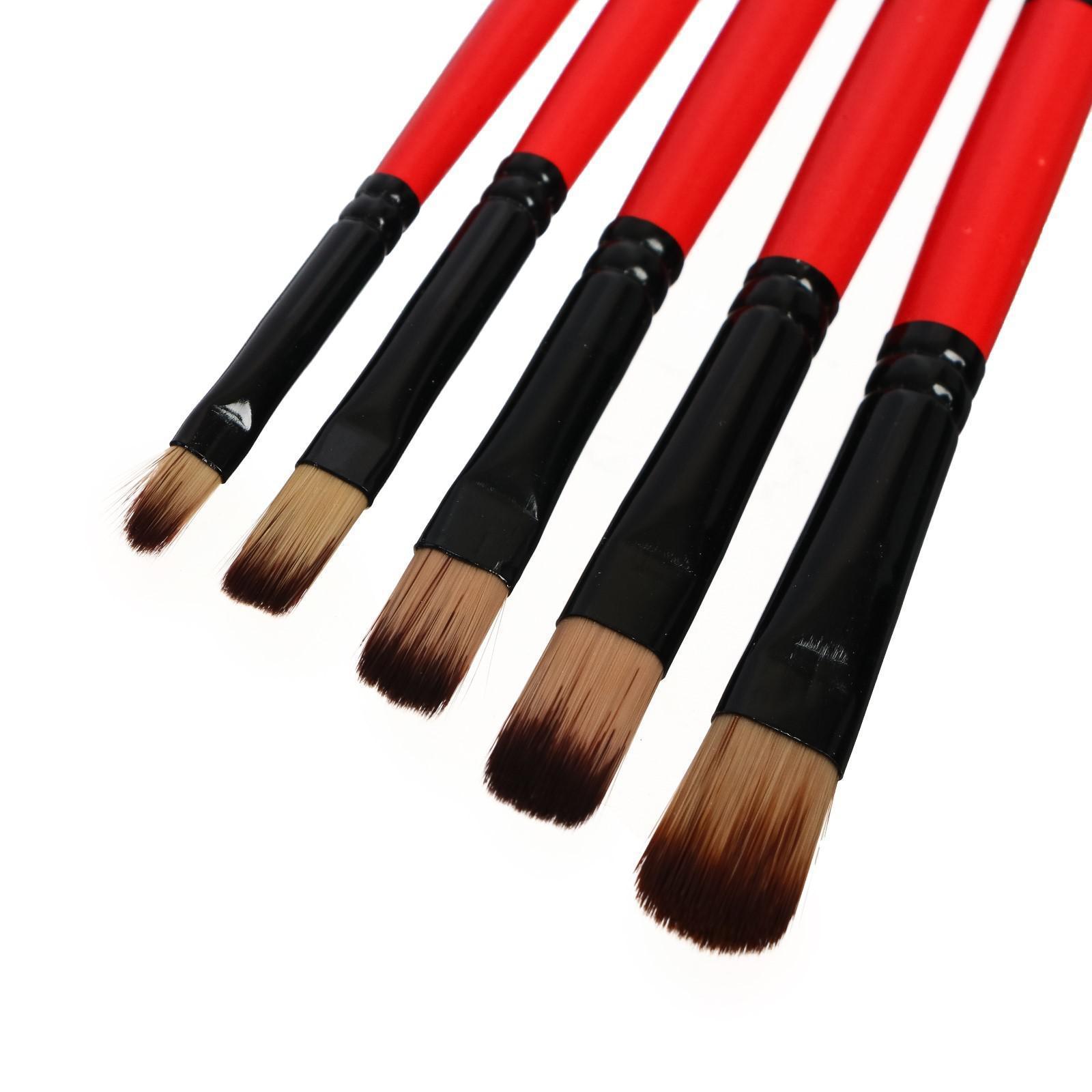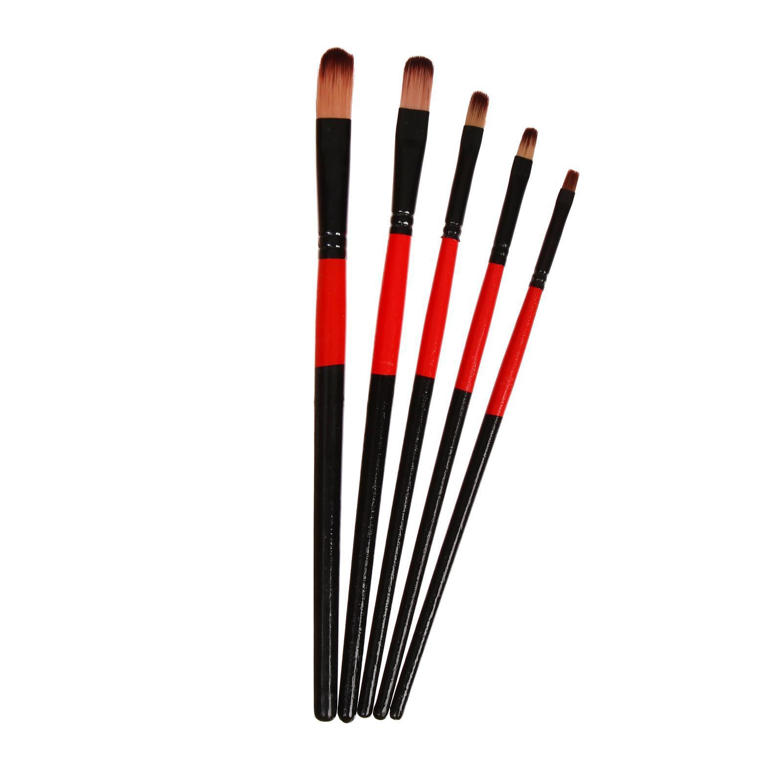 Набор кистей нейлон 5 штук, закругленные, плоские