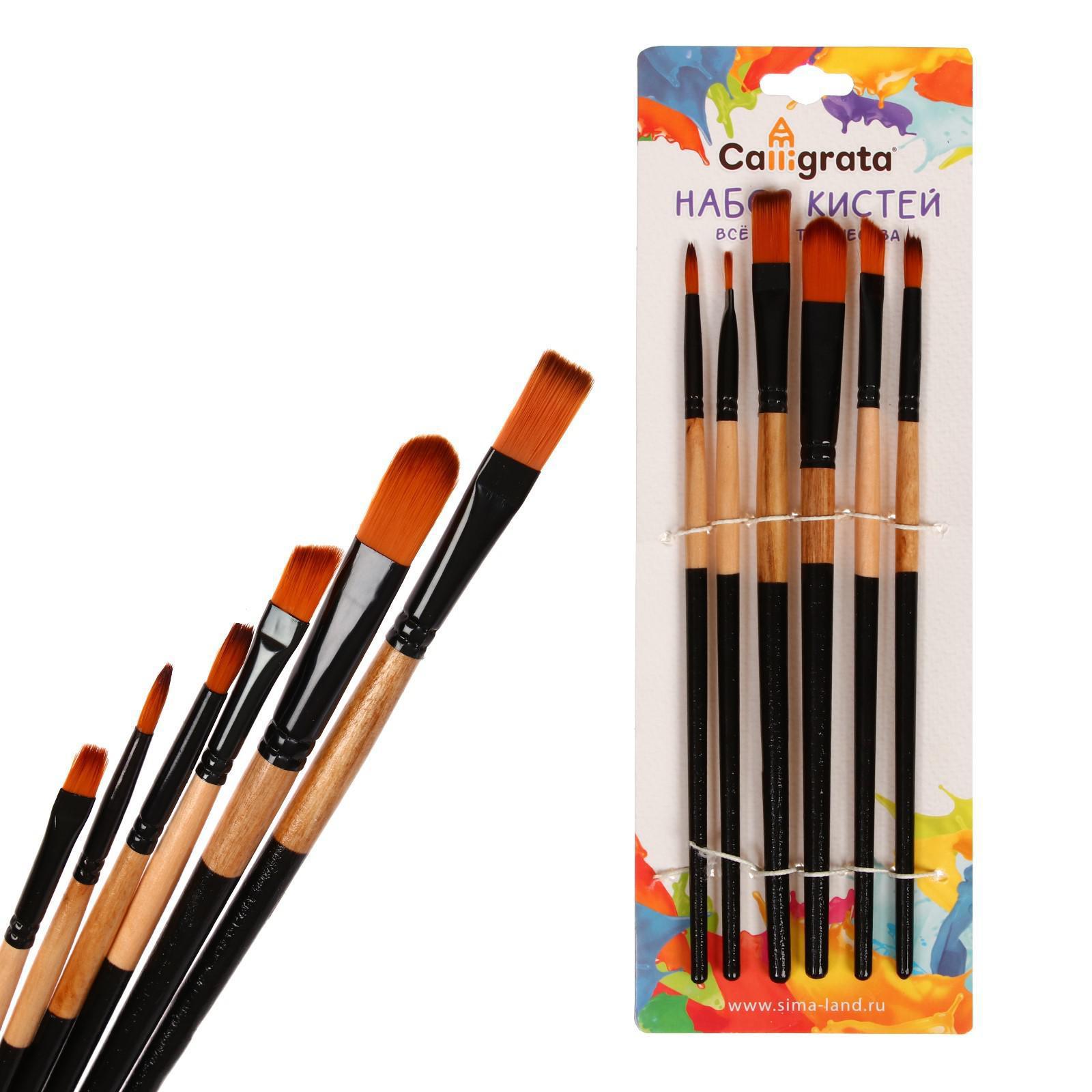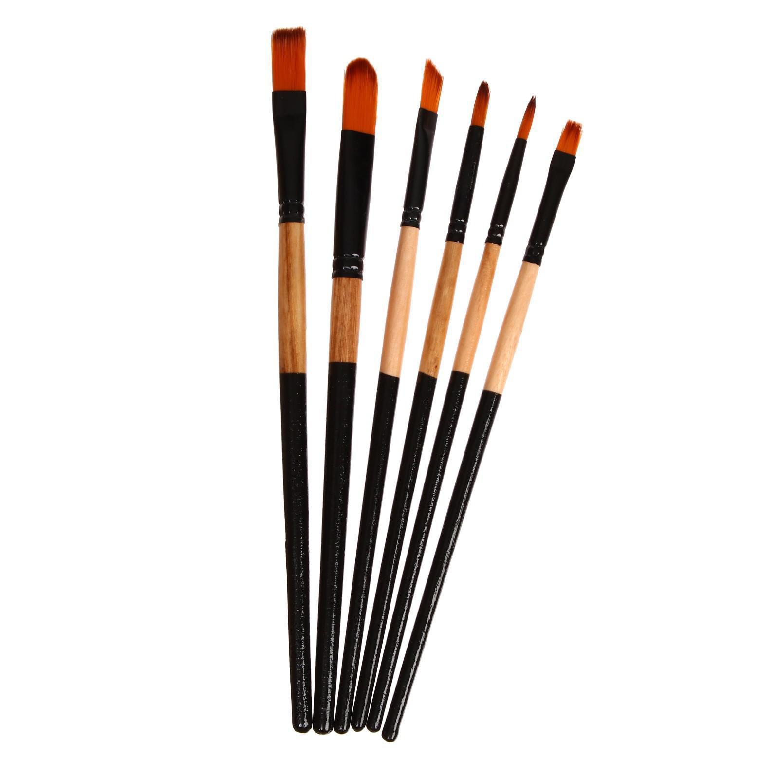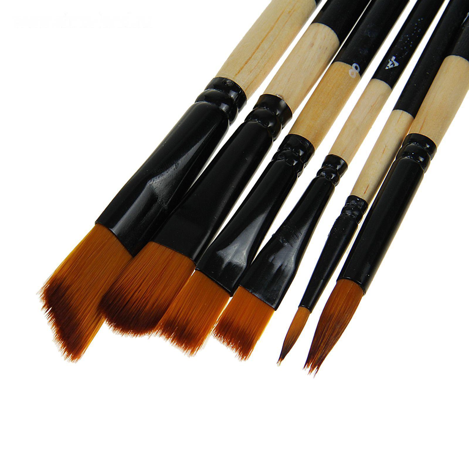 Набор кистей нейлон 6 штук: 2 круглые, 4 плоские