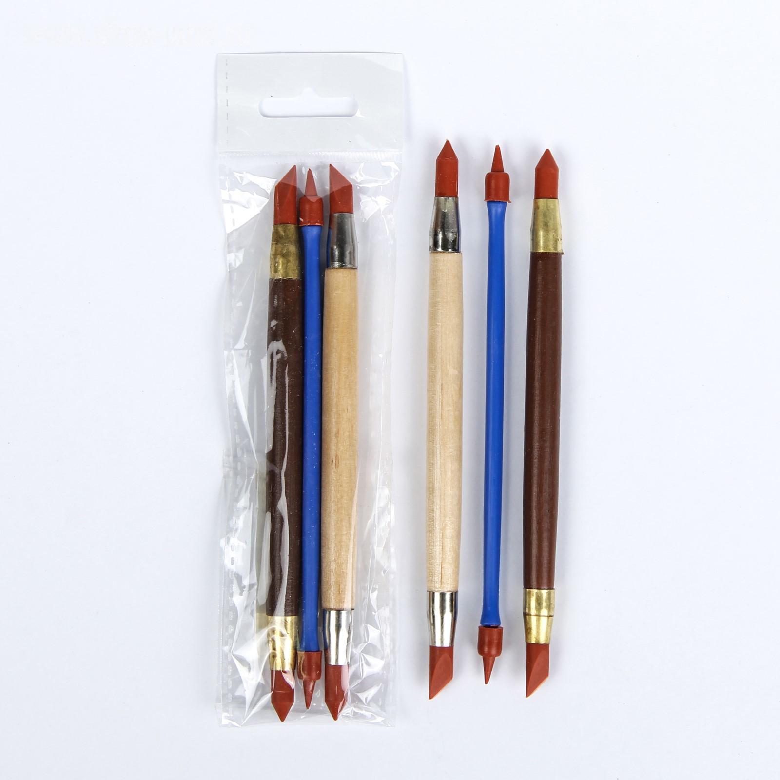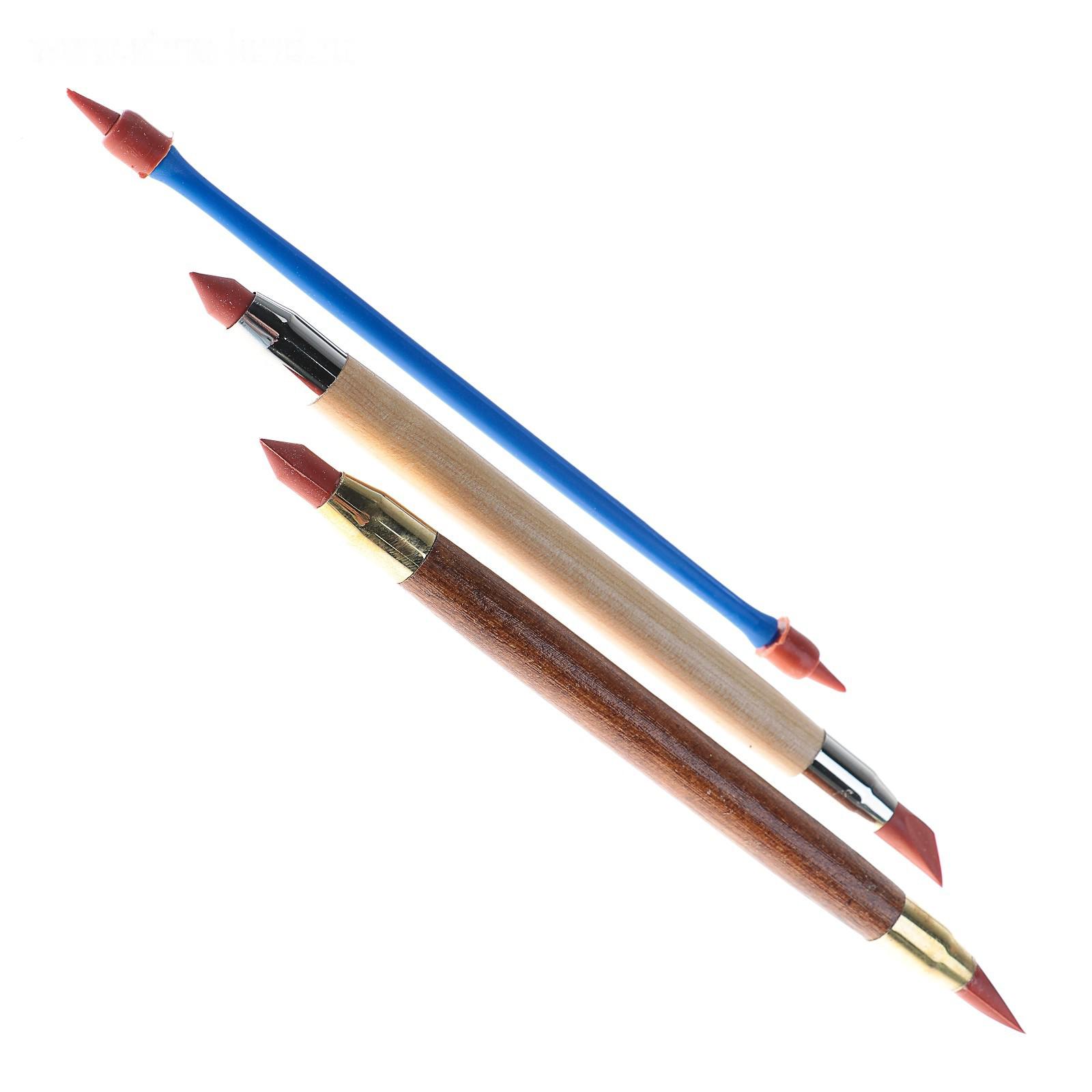 Кисти с резиновыми кончиками используются для моделирования, работы с пластилином и скульптурой. Также применяются для рельефного декупажа, чтобы аккуратно расплющивать края объёмного изображения, подчищать и убирать лишнюю пасту (кистью с острым концом) или чтобы фиксировать и прижимать некоторые детали (кистью с круглым концом). Хорошо удаляют отпечатки пальцев на поверхности скульптуры из глины.