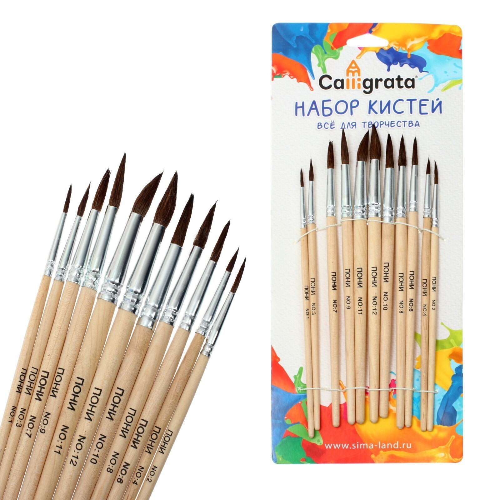 УЦЕНКА Набор кистей пони 11 штук: № 1, 2, 3, 4, 6, 7, 8, 9, 10, 11, 12, круглые
