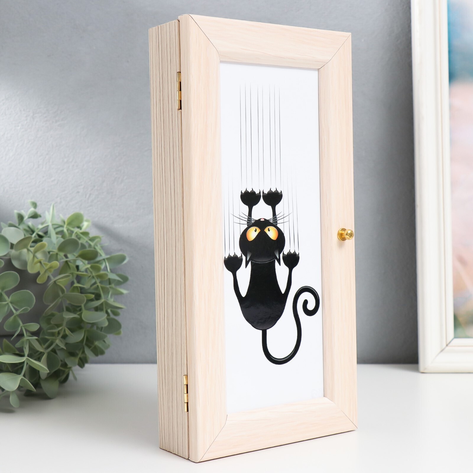 Ключница "Кот" молочный дуб 15х30 см МИКС