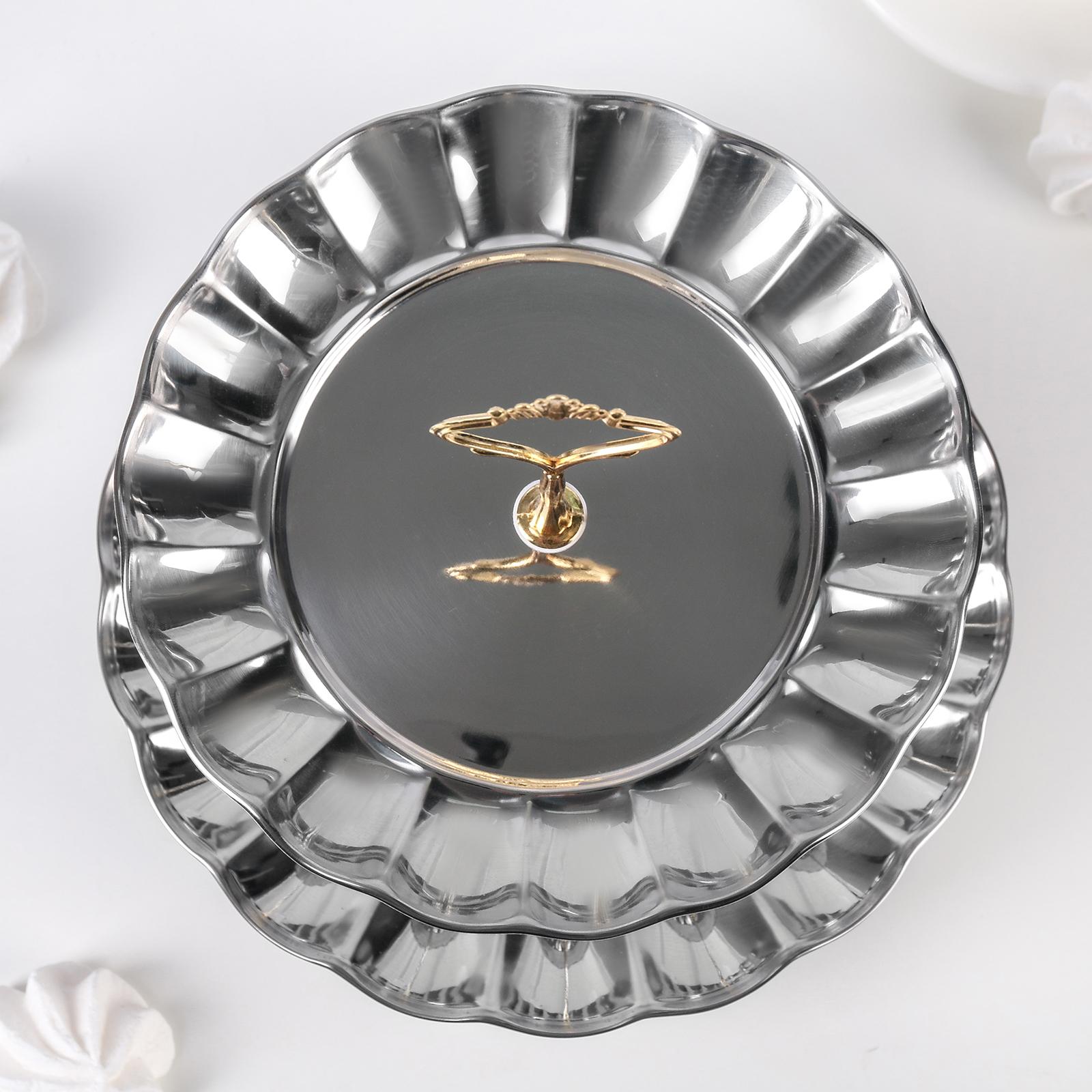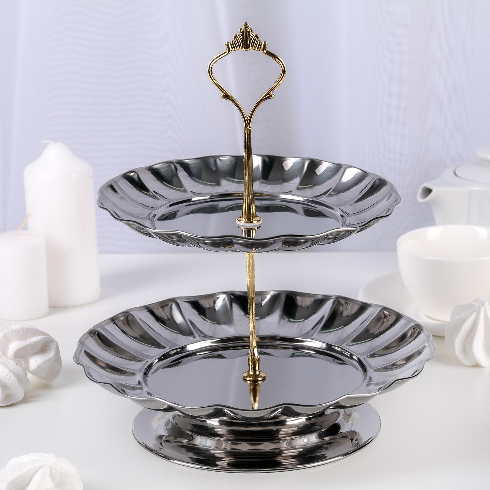 Блюдо 2-х ярусное, d=18/22 см, цвет серебряный