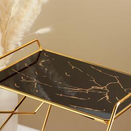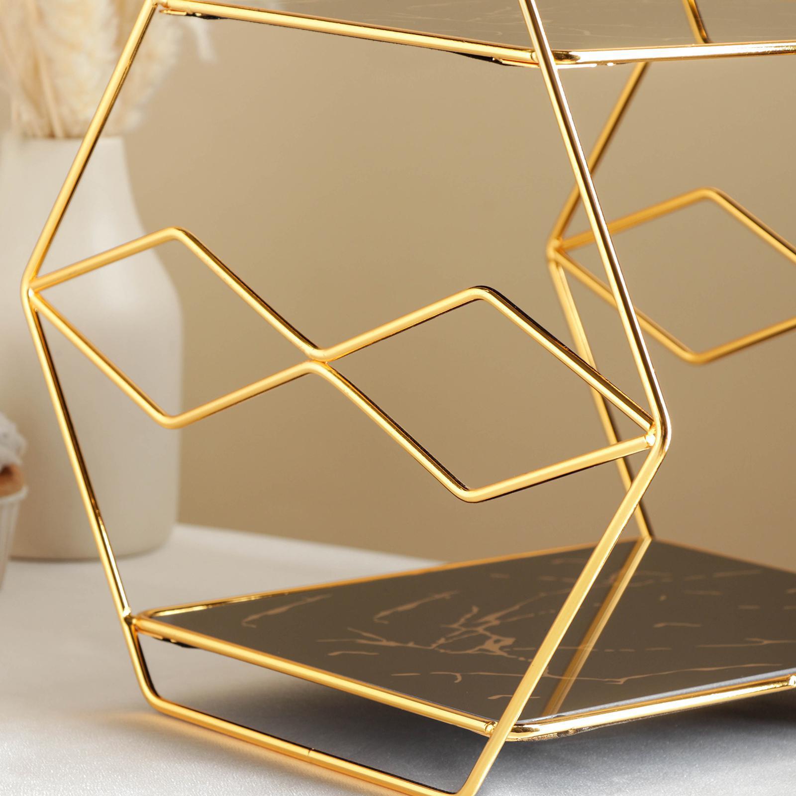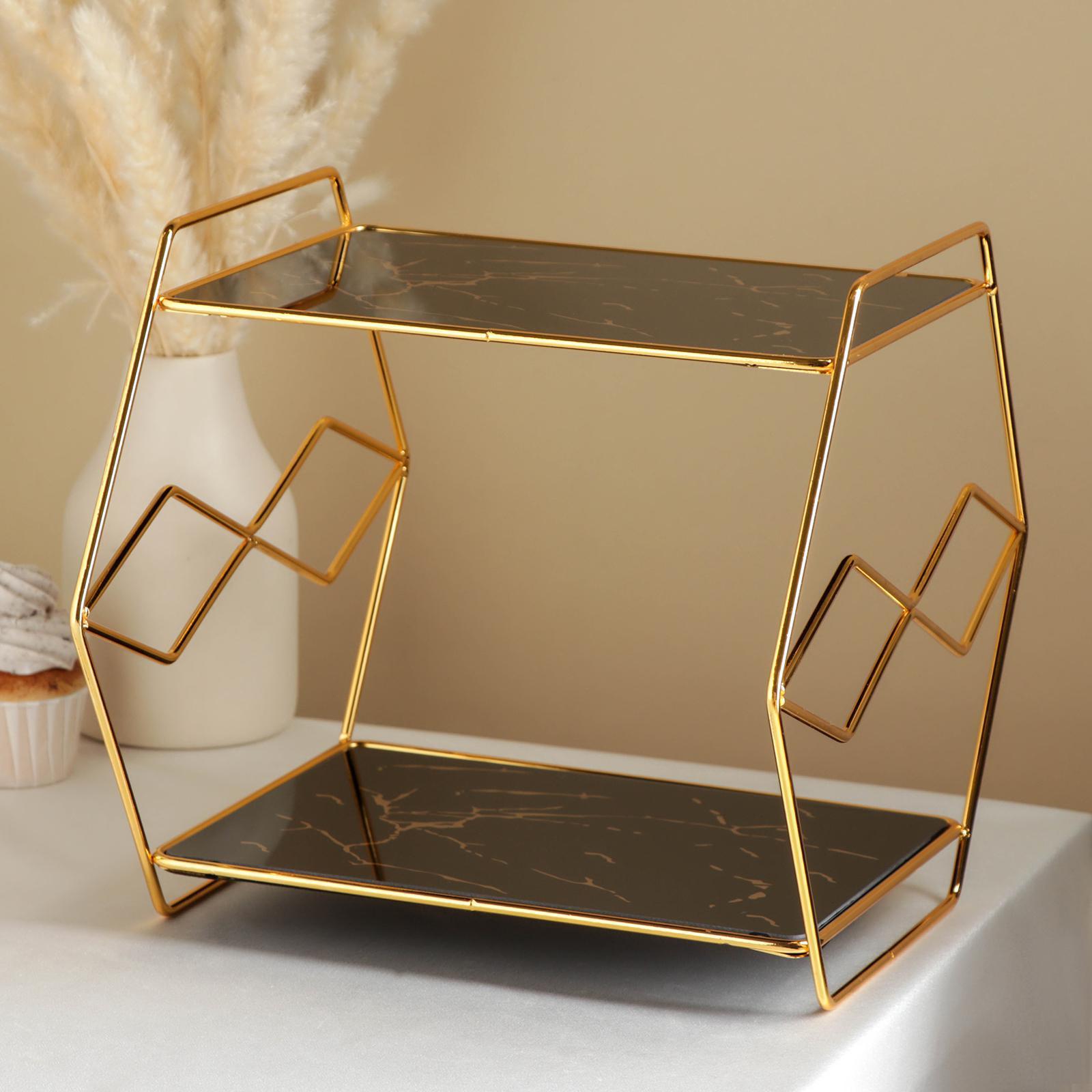 Подставка для десертов 2-х уровневая «Ромбы. Чёрный мрамор», 31×25,5×27 см, прямоугольная, цвет металла золотой