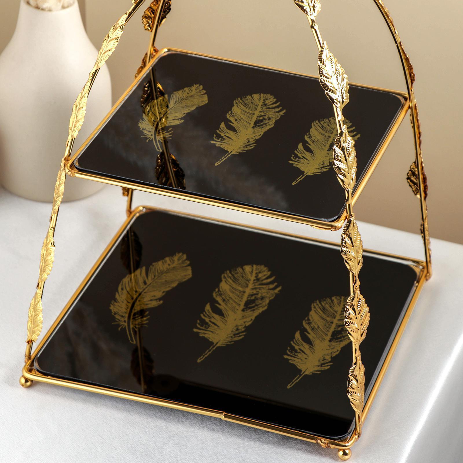 Подставка под десерты «Перо», 2 яруса, 26×26×37 см, цвет металла золотой