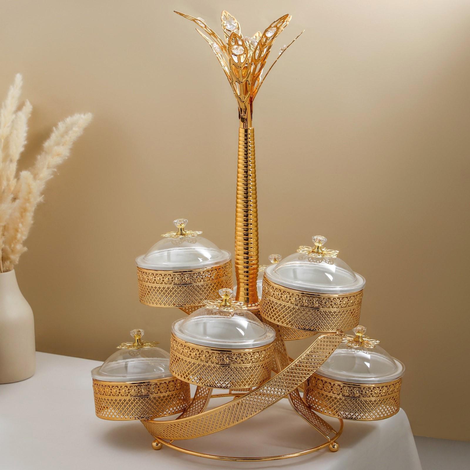Подставка для десертов «Гавана», 35×35×53, 6 секций, цвет металла золотой