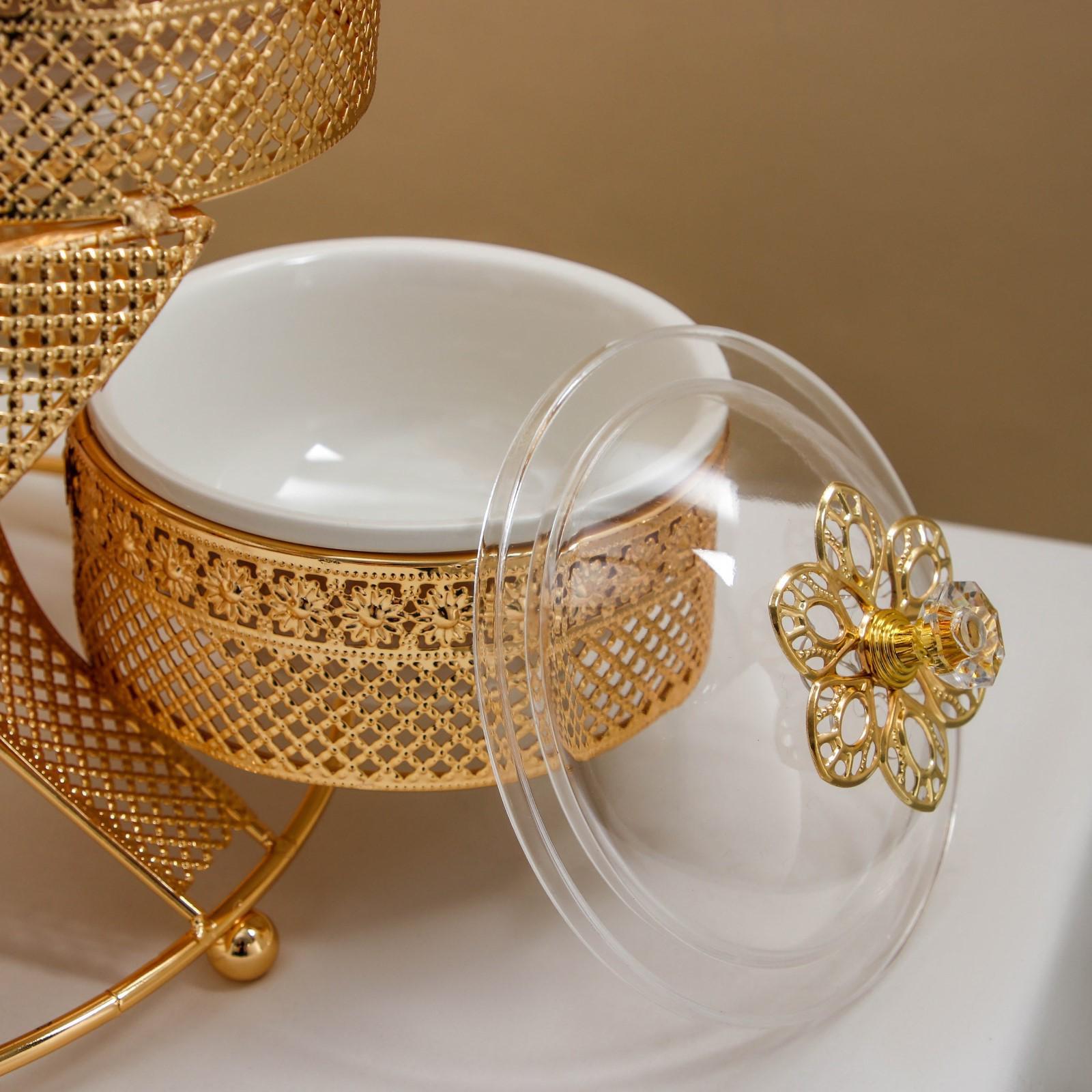 Подставка для десертов позволит эффектно подать сладости и закуски к праздничному столу. Подставка выполнена из металла «под золото».