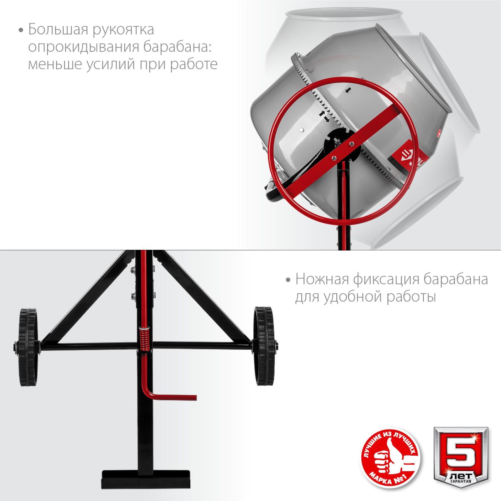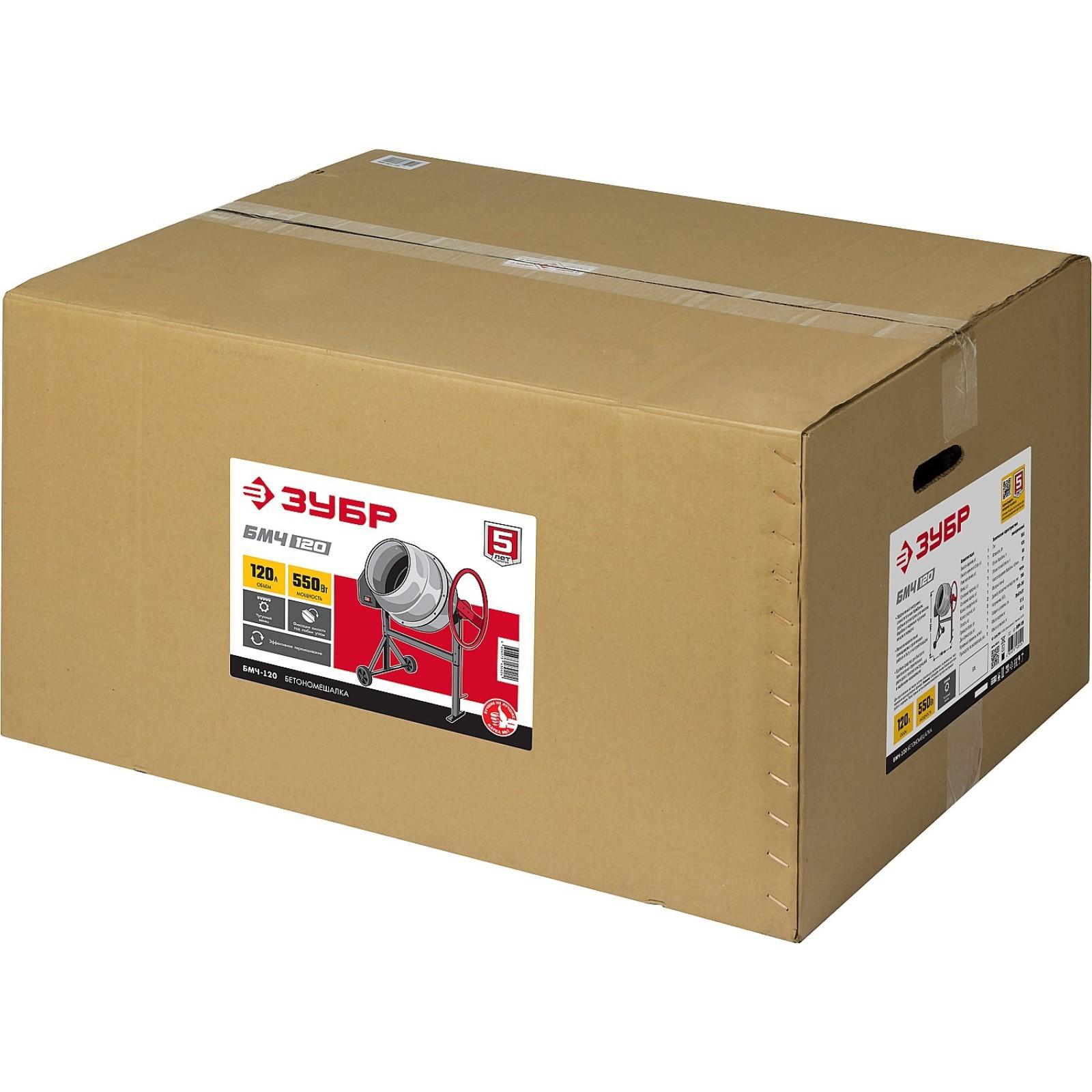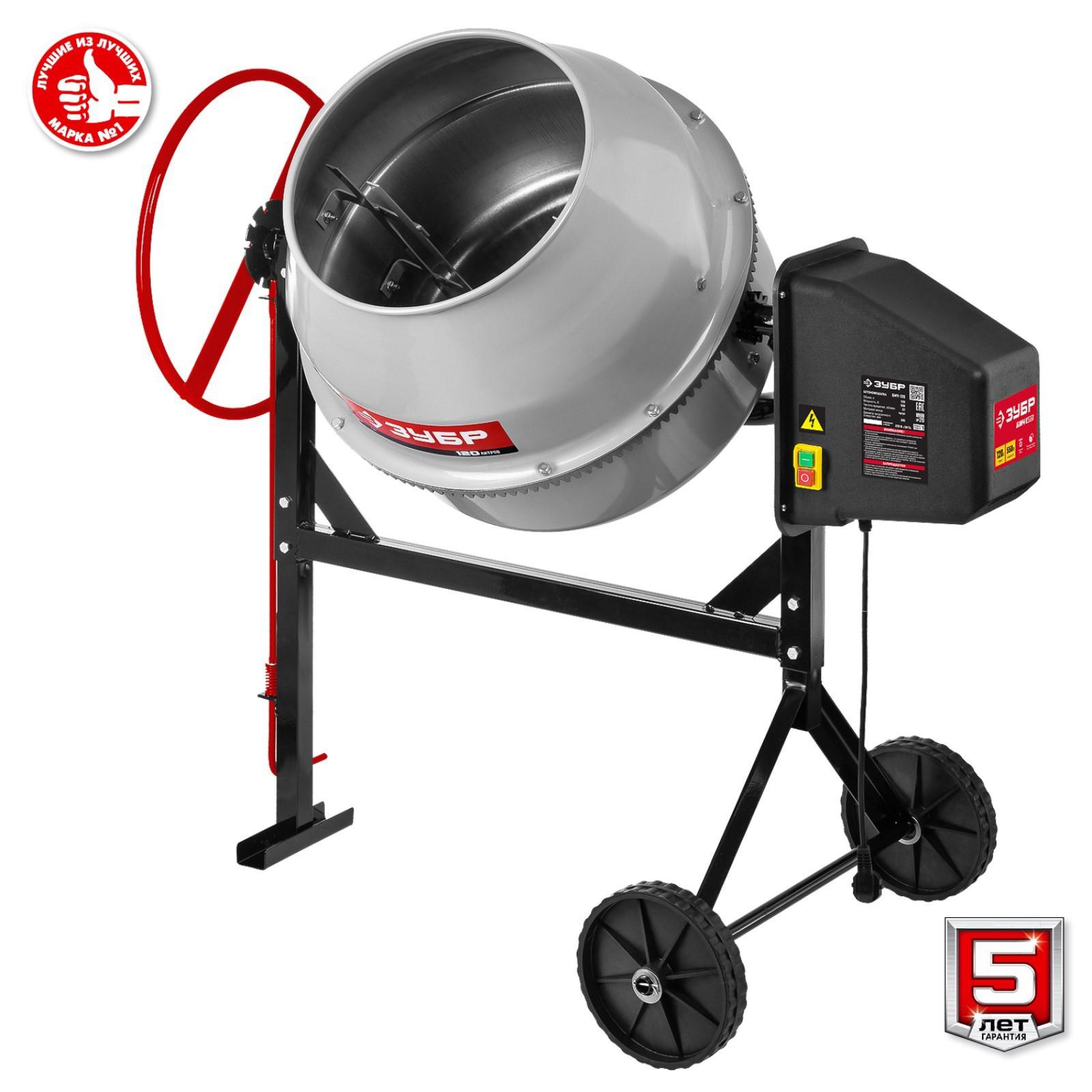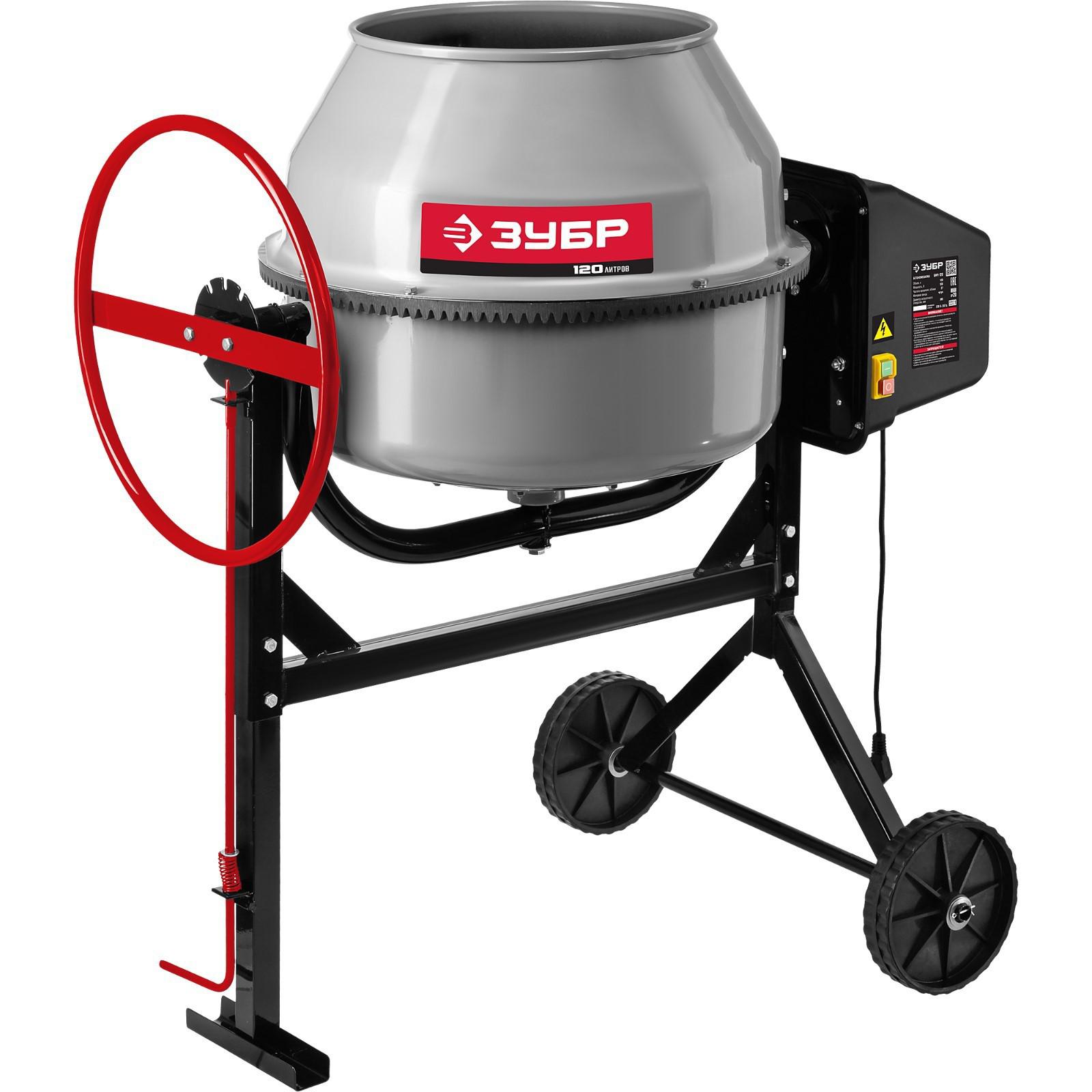 Бетономешалка ЗУБР БМЧ-120, 220 В, 550 Вт, 27 об/мин, барабан 120 л, чугунный венец