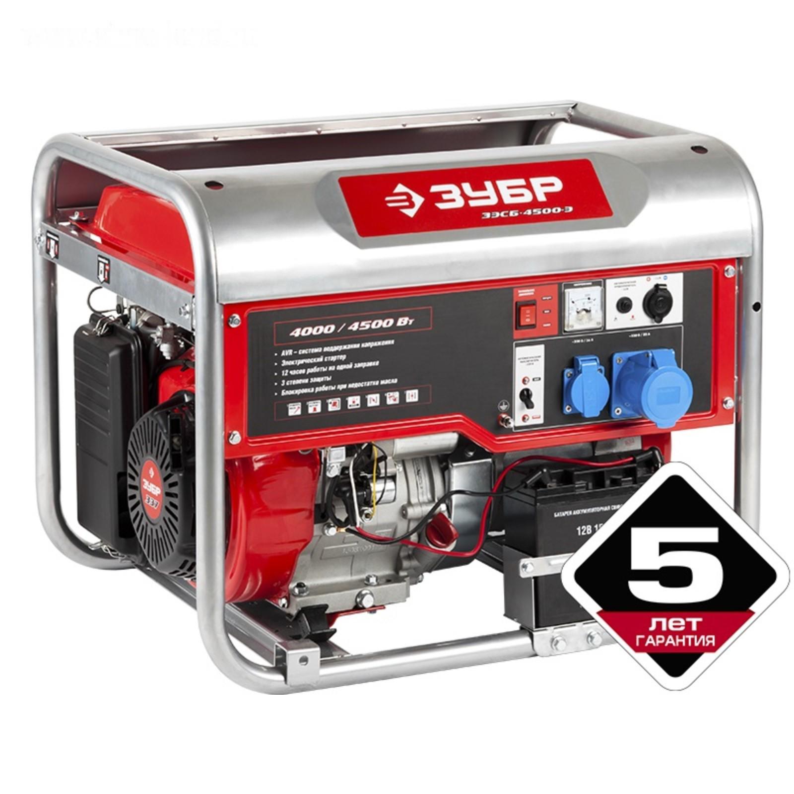 Генератор "ЗУБР" ЗЭСБ-4500-Э, бензиновый, 4Т, 4500 Вт, ручной/электростарт, 25 л, 220/12 В