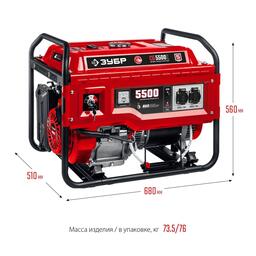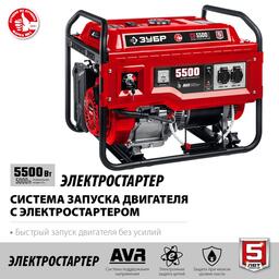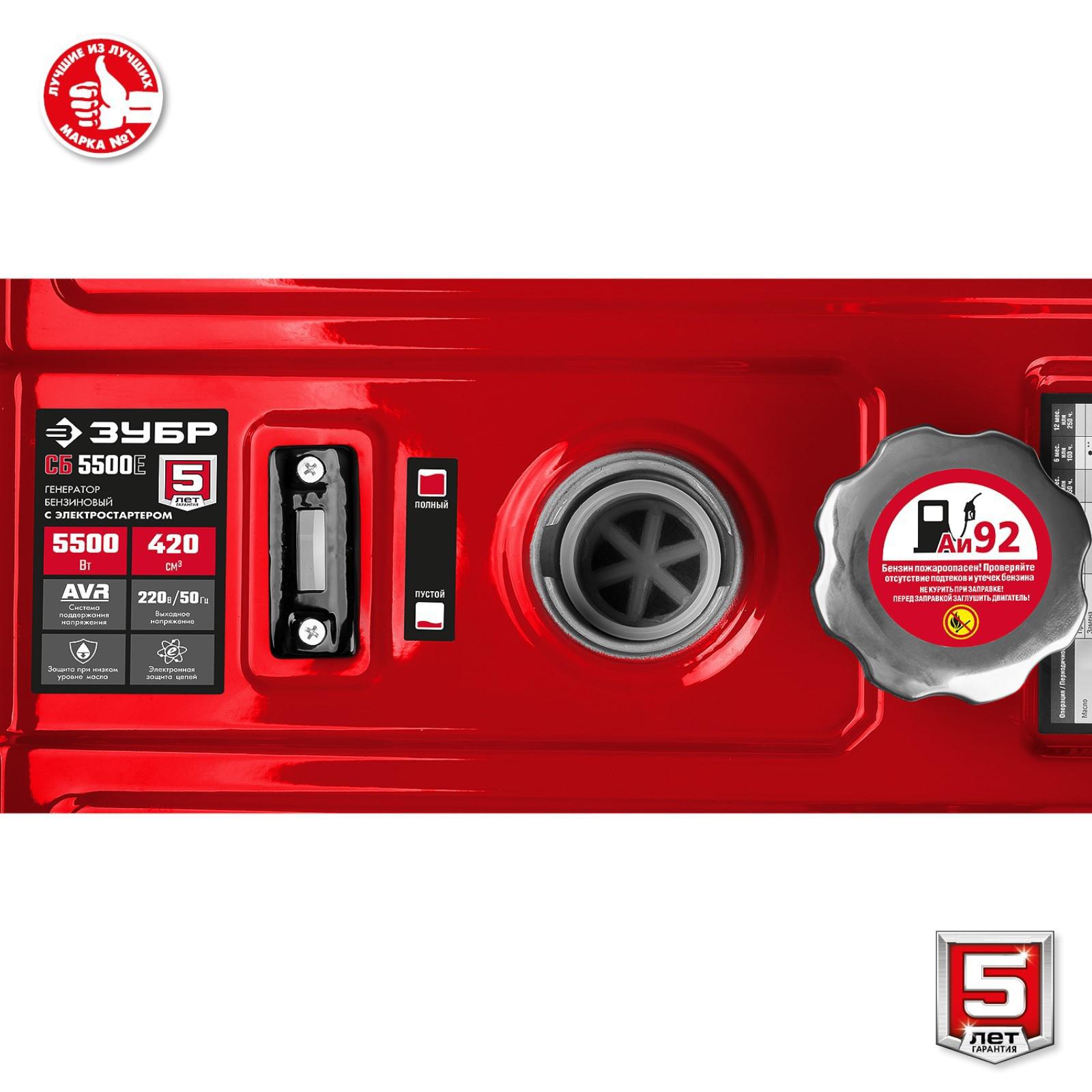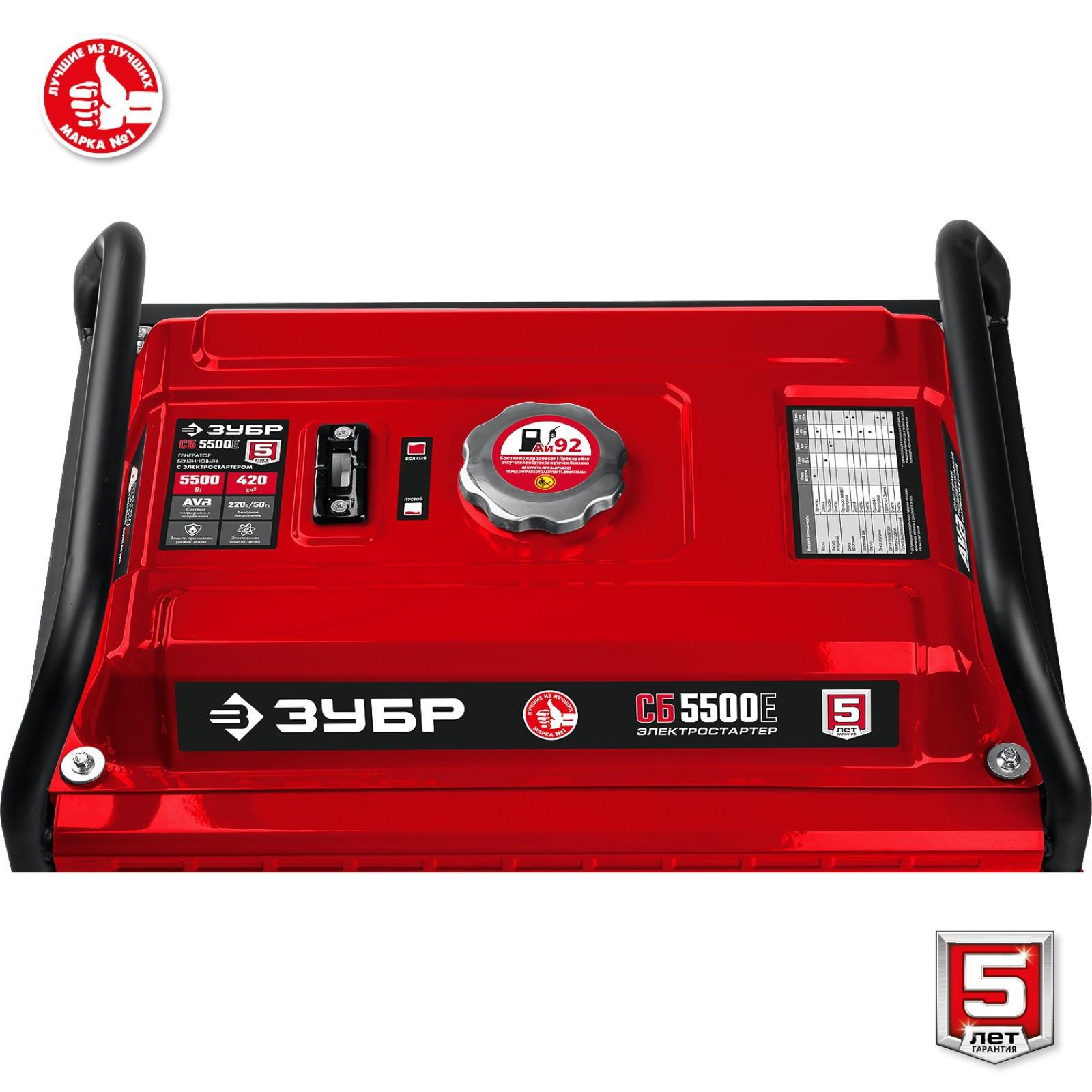Бензиновый генератор ЗУБР СБ-5500Е, 5500 Вт, 15 л.с., 2х220 В, ручной/электростартер