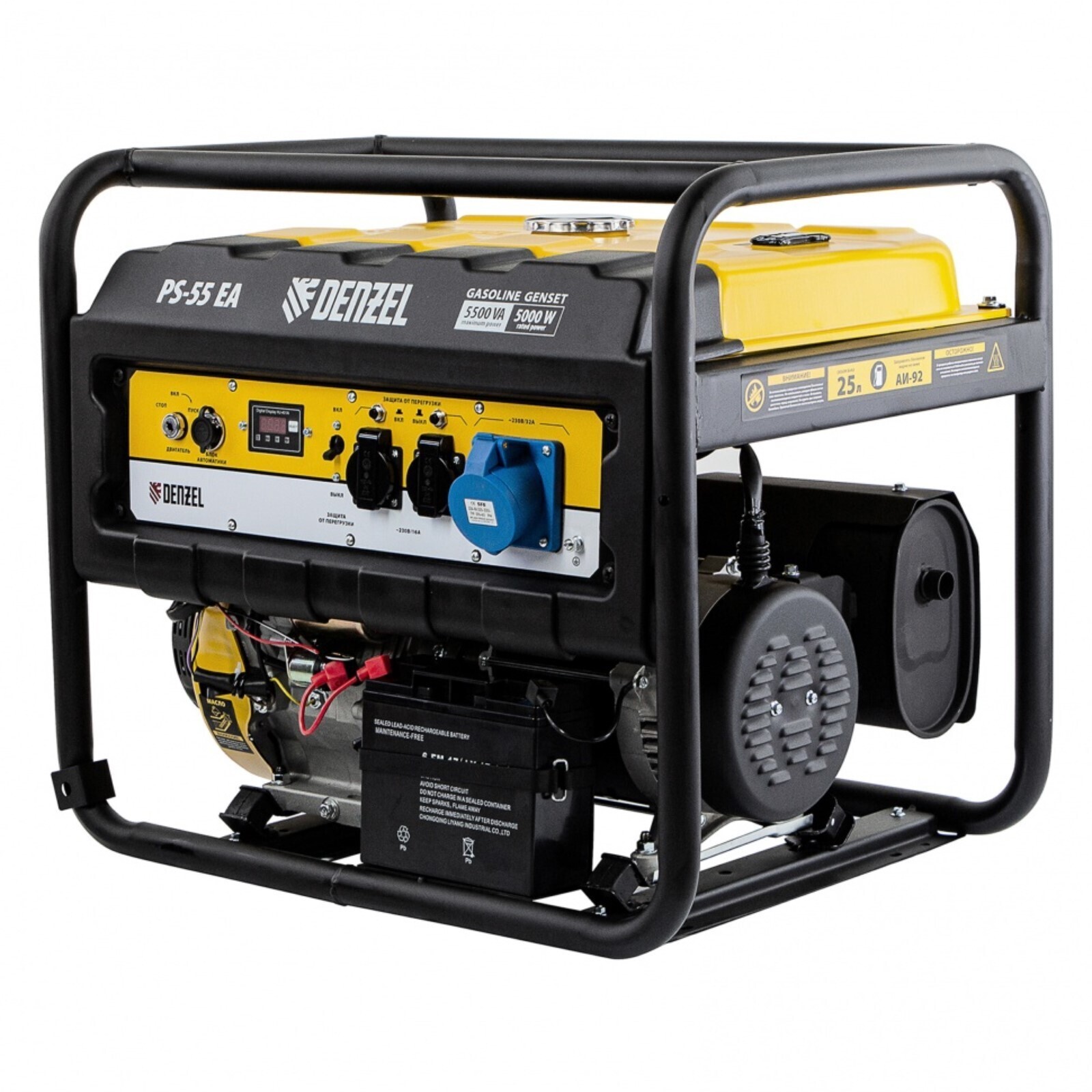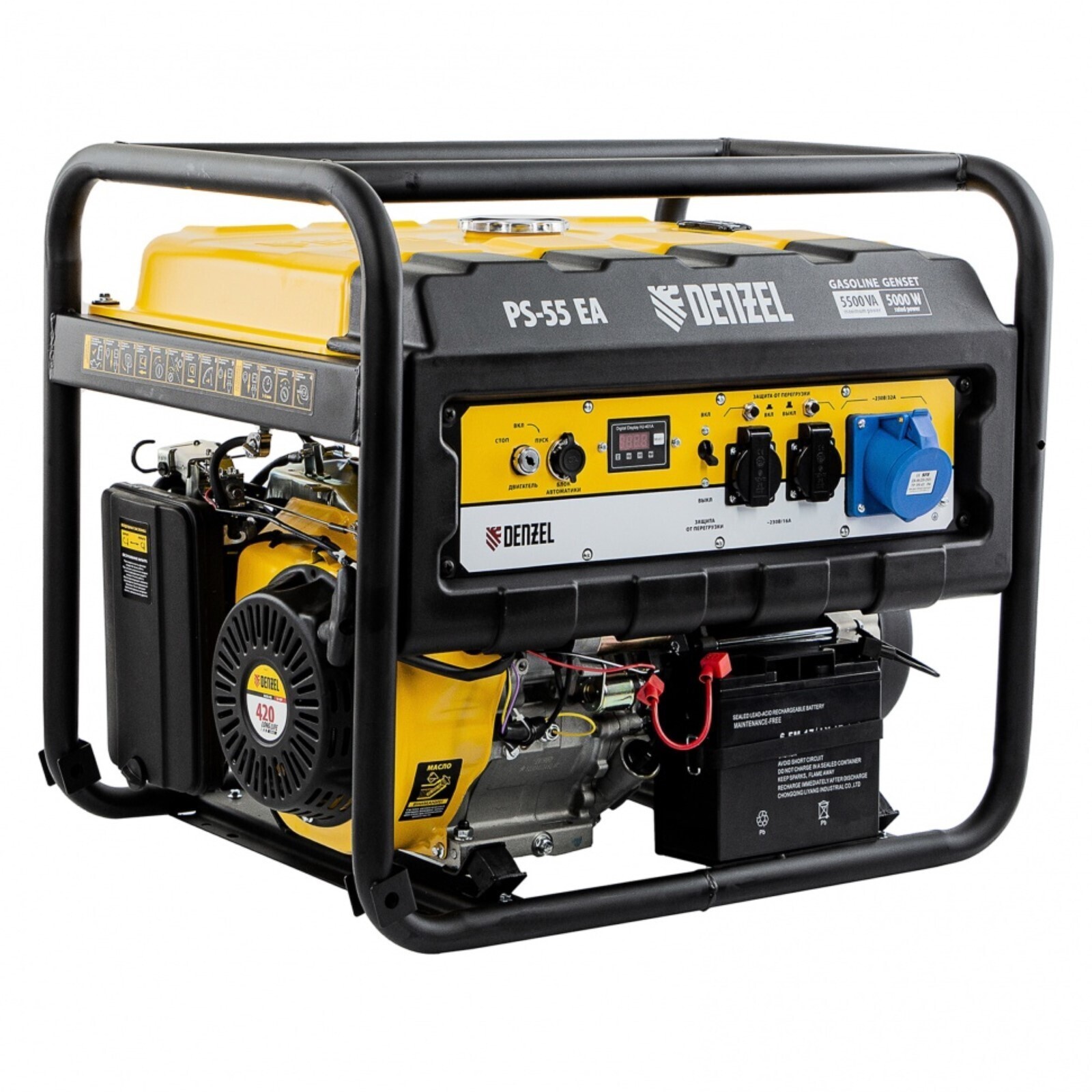 Генератор бензиновый Denzel PS 55 EA 946874, 4Т, 5500 Вт, 230 В, 25 л, коннектор автоматики