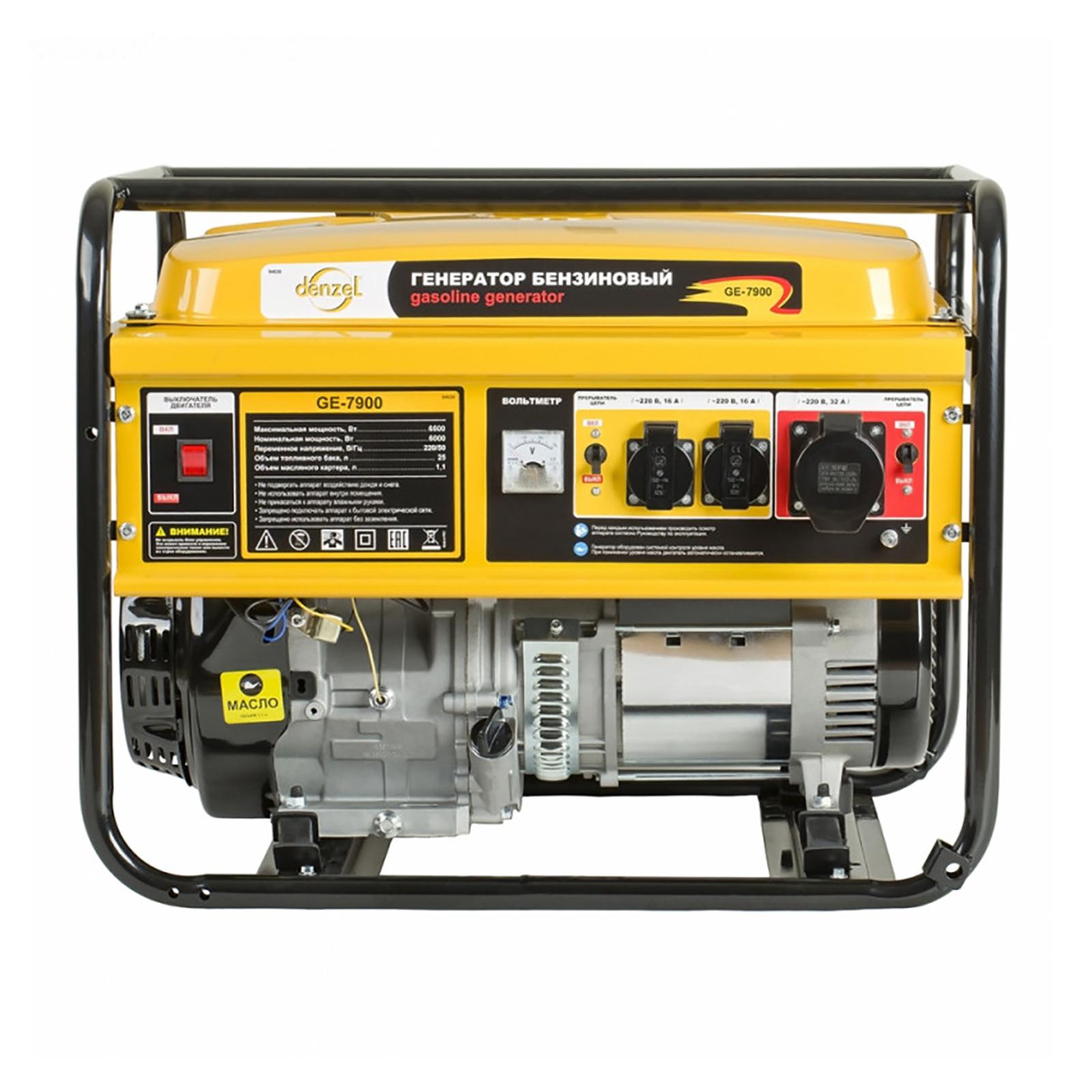 Генератор бензиновый DENZEL GE 7900, 6/6.5 кВт, 220 В/50 Гц, 25 л, ручной старт
