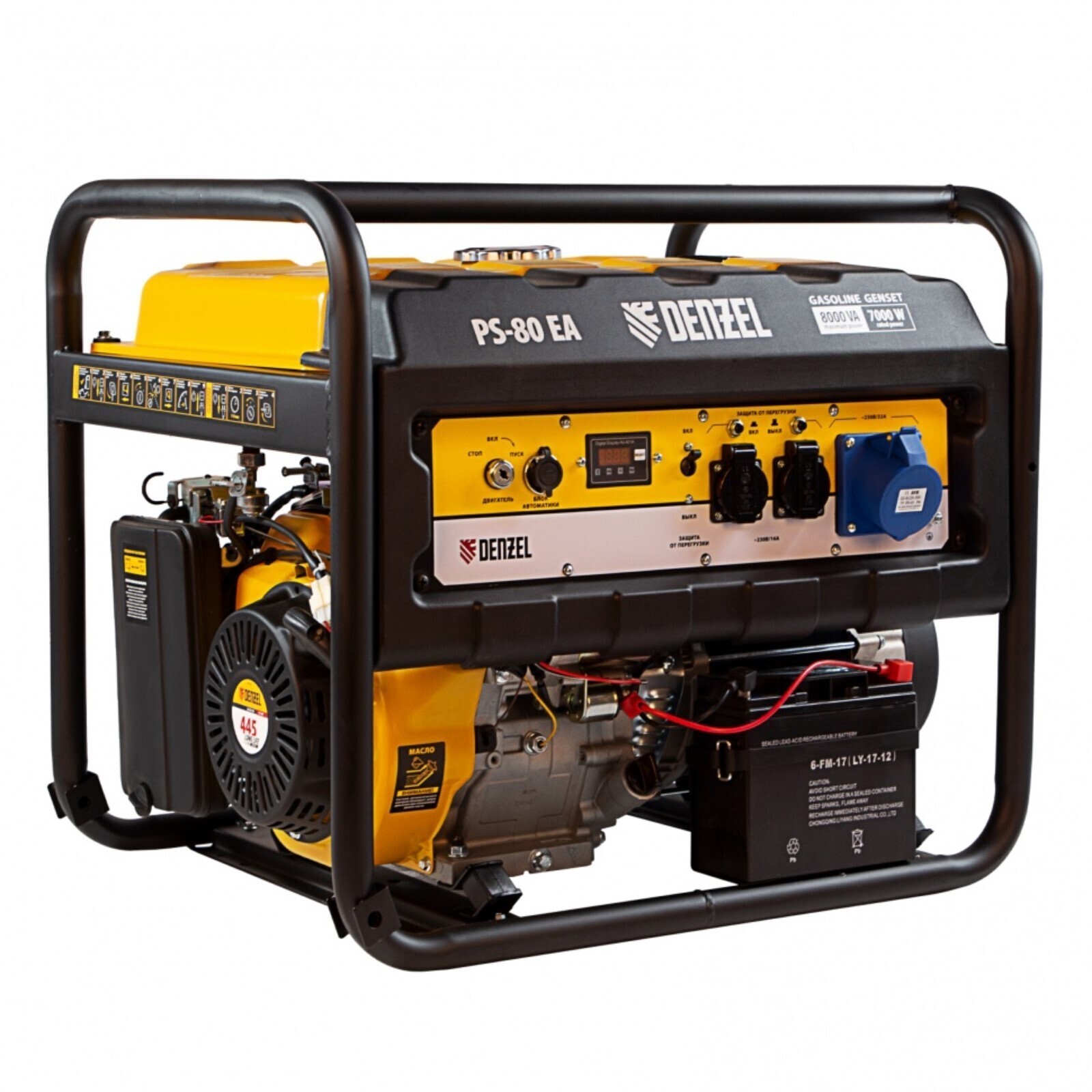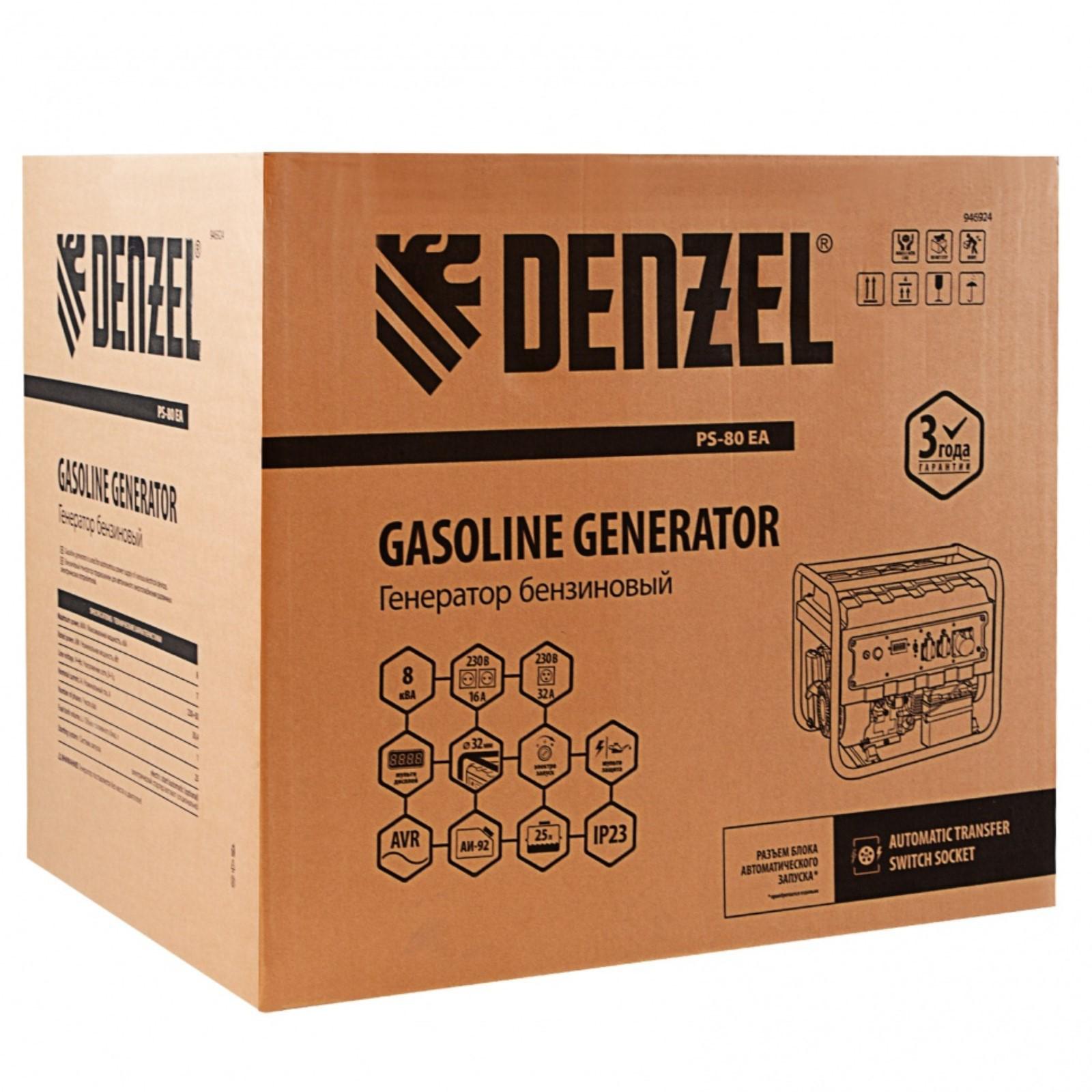 Генератор бензиновый Denzel PS 80 EA 946924, 4Т, 8000 Вт, 230 В, 25 л, коннектор автоматики 456470