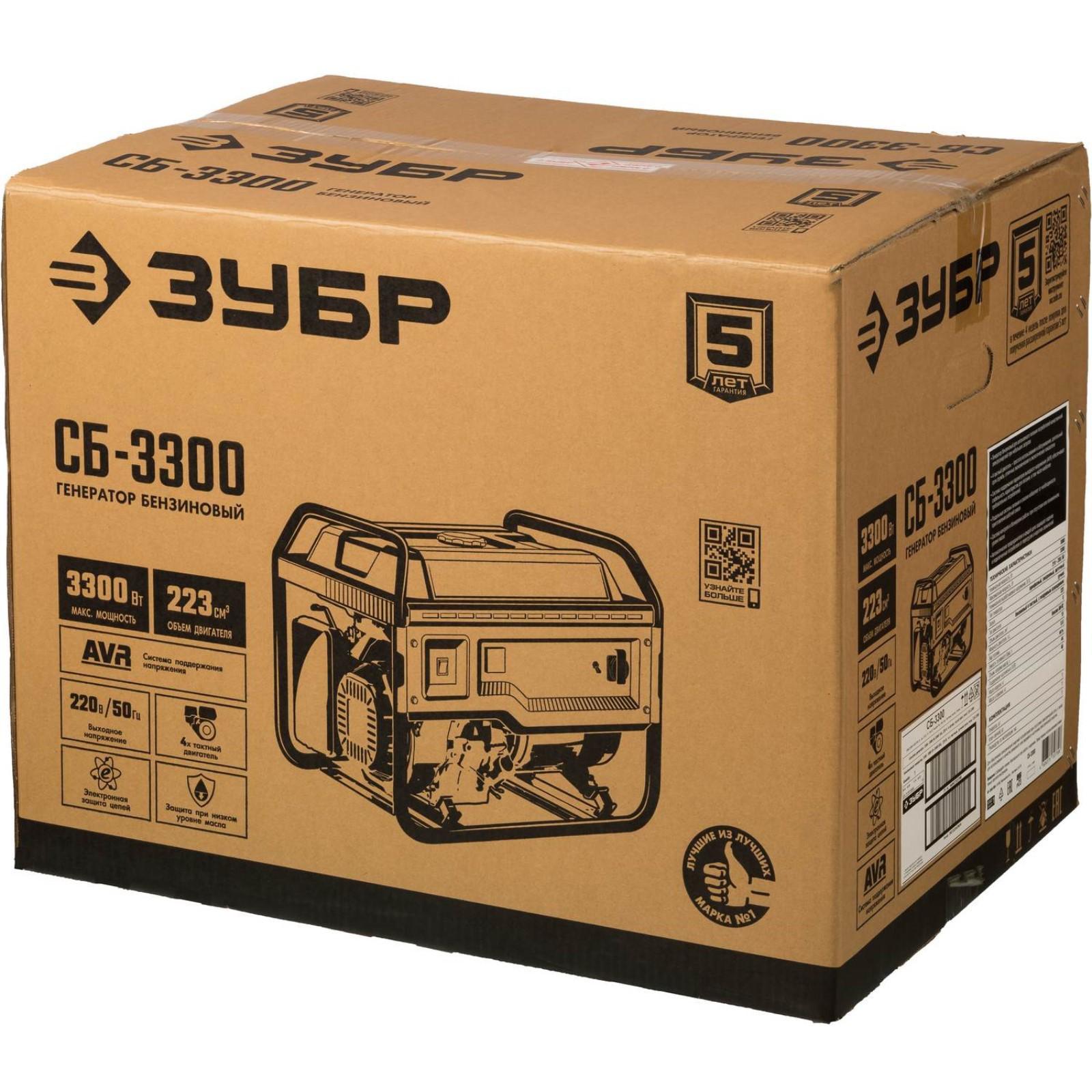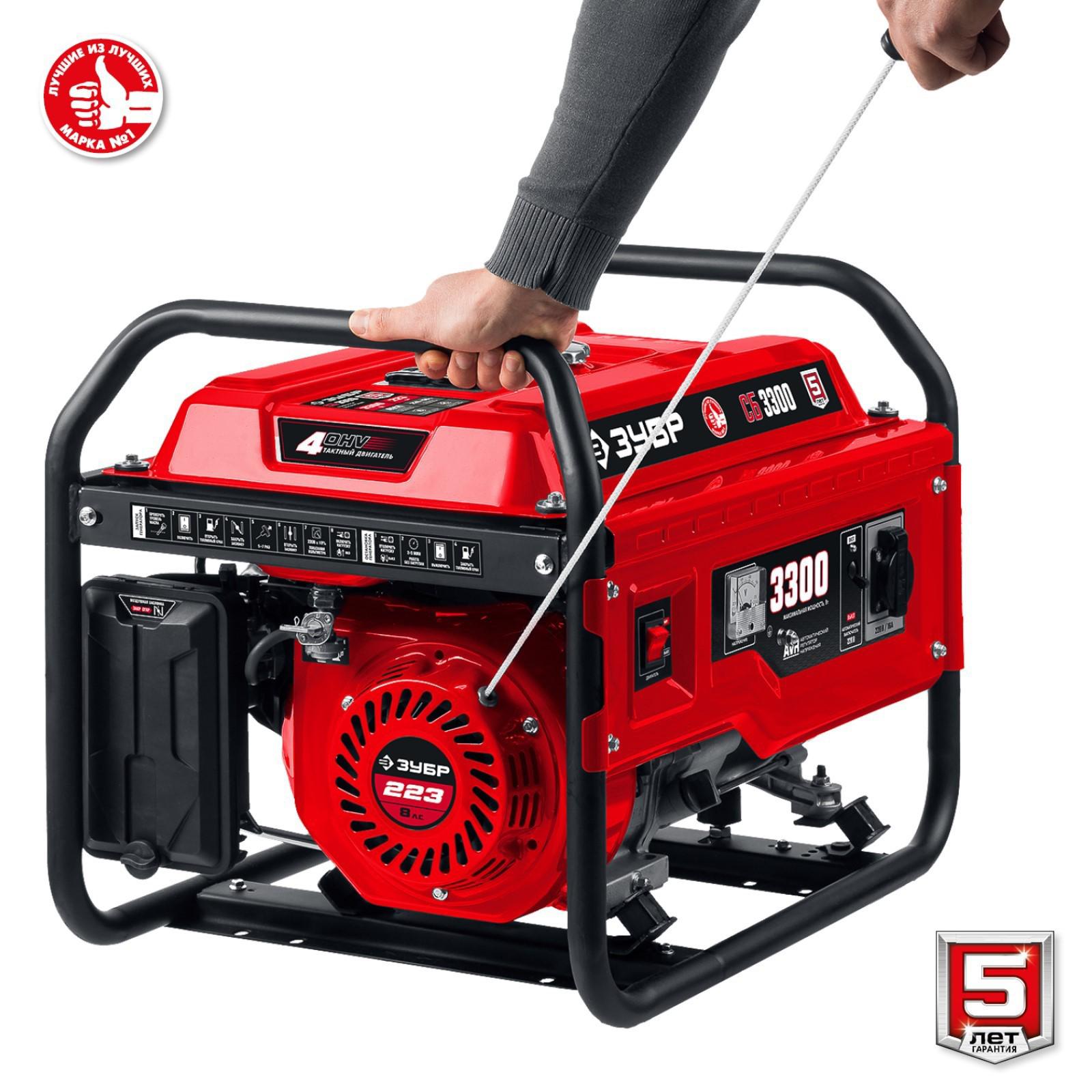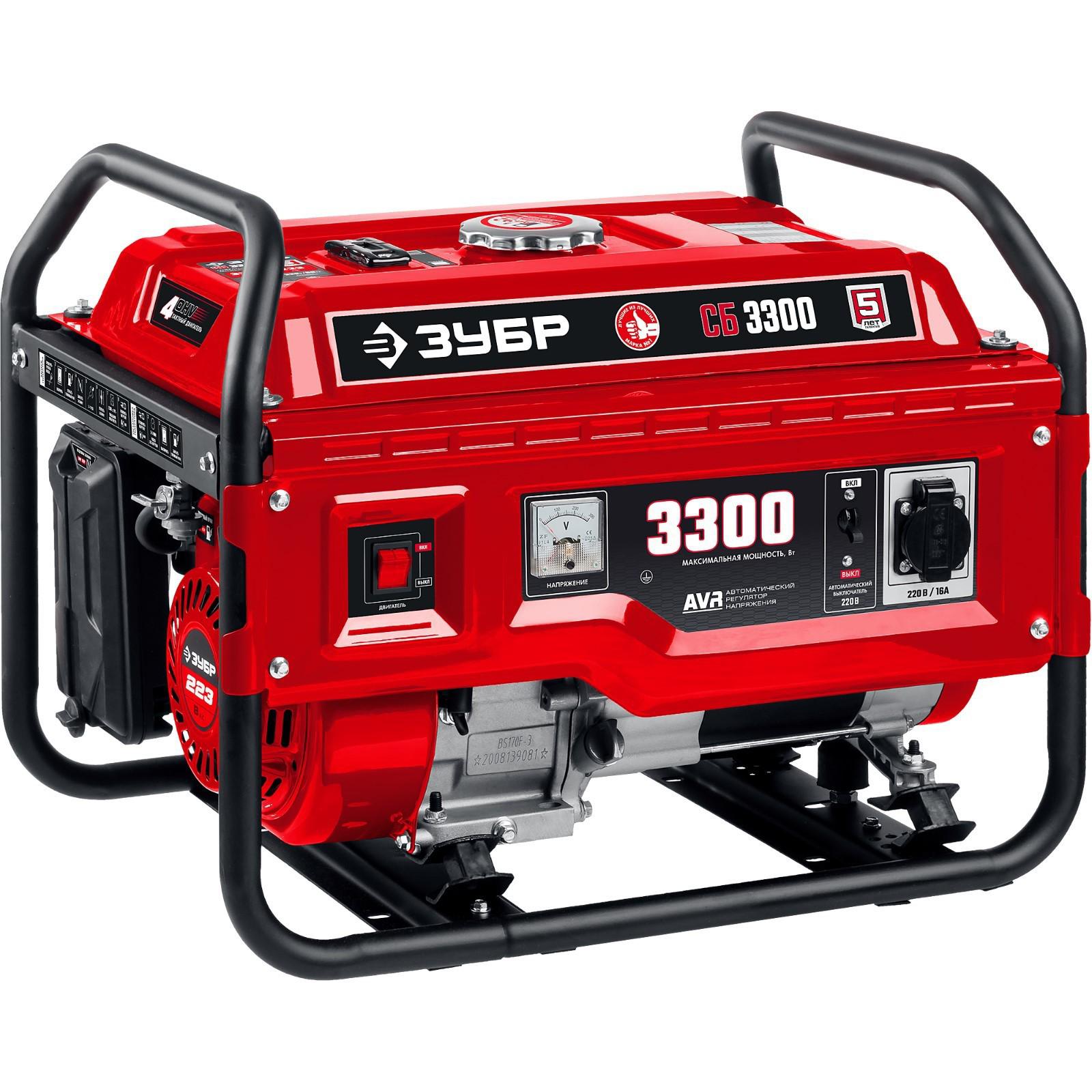 Генератор бензиновый ЗУБР СБ-3300, 4Т, 3300 Вт, 8 л.с., 2.1 л/ч, 220 В, ручной стартер