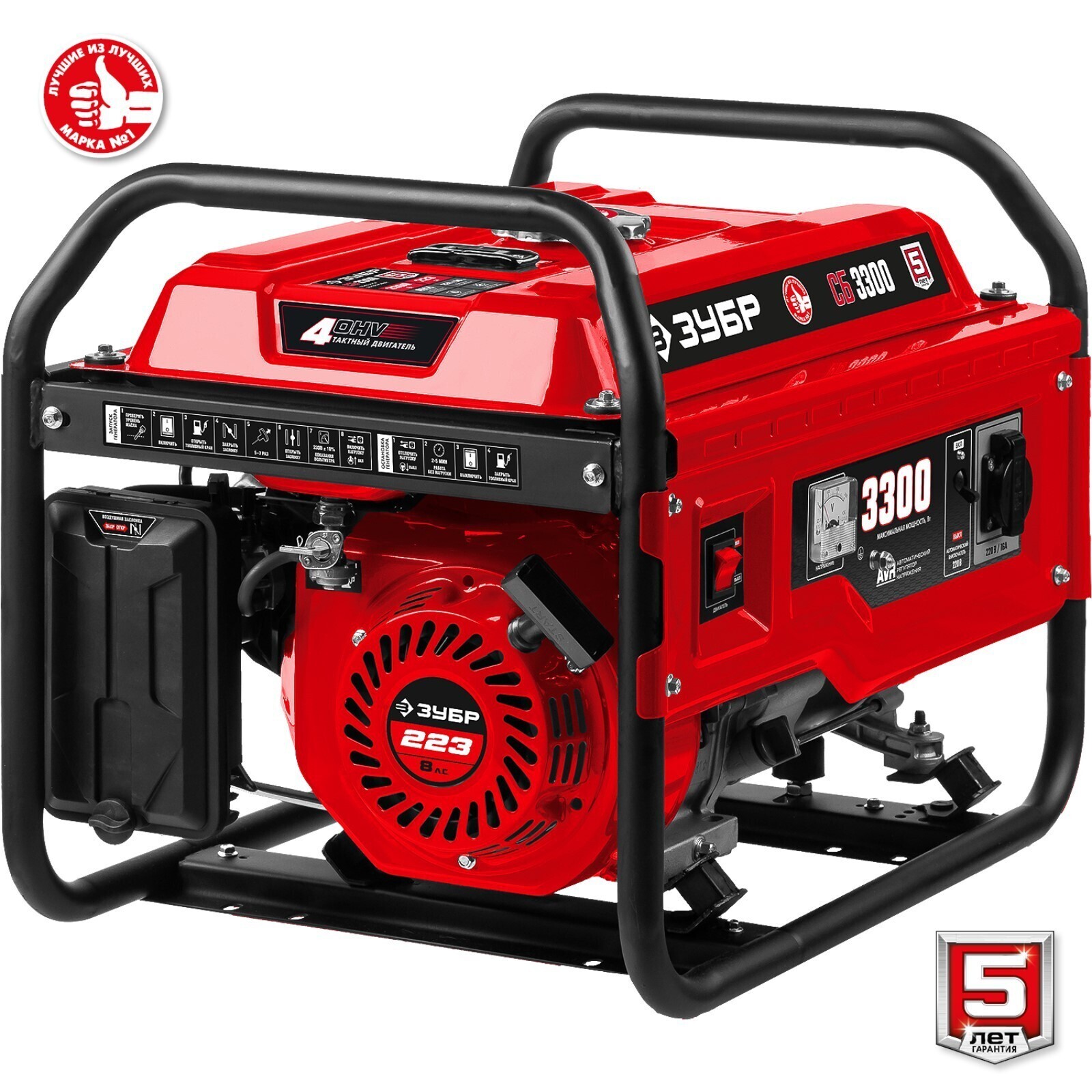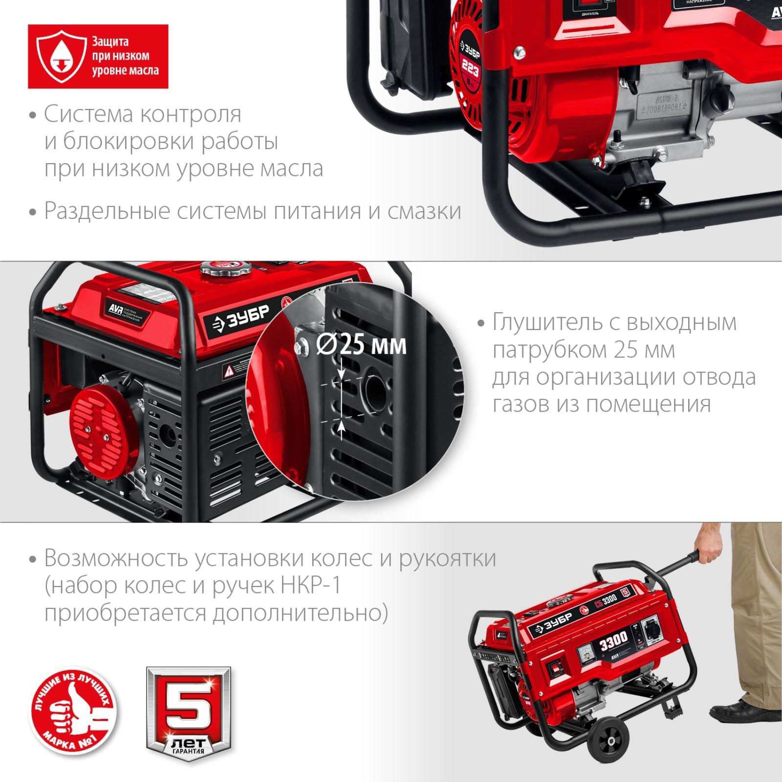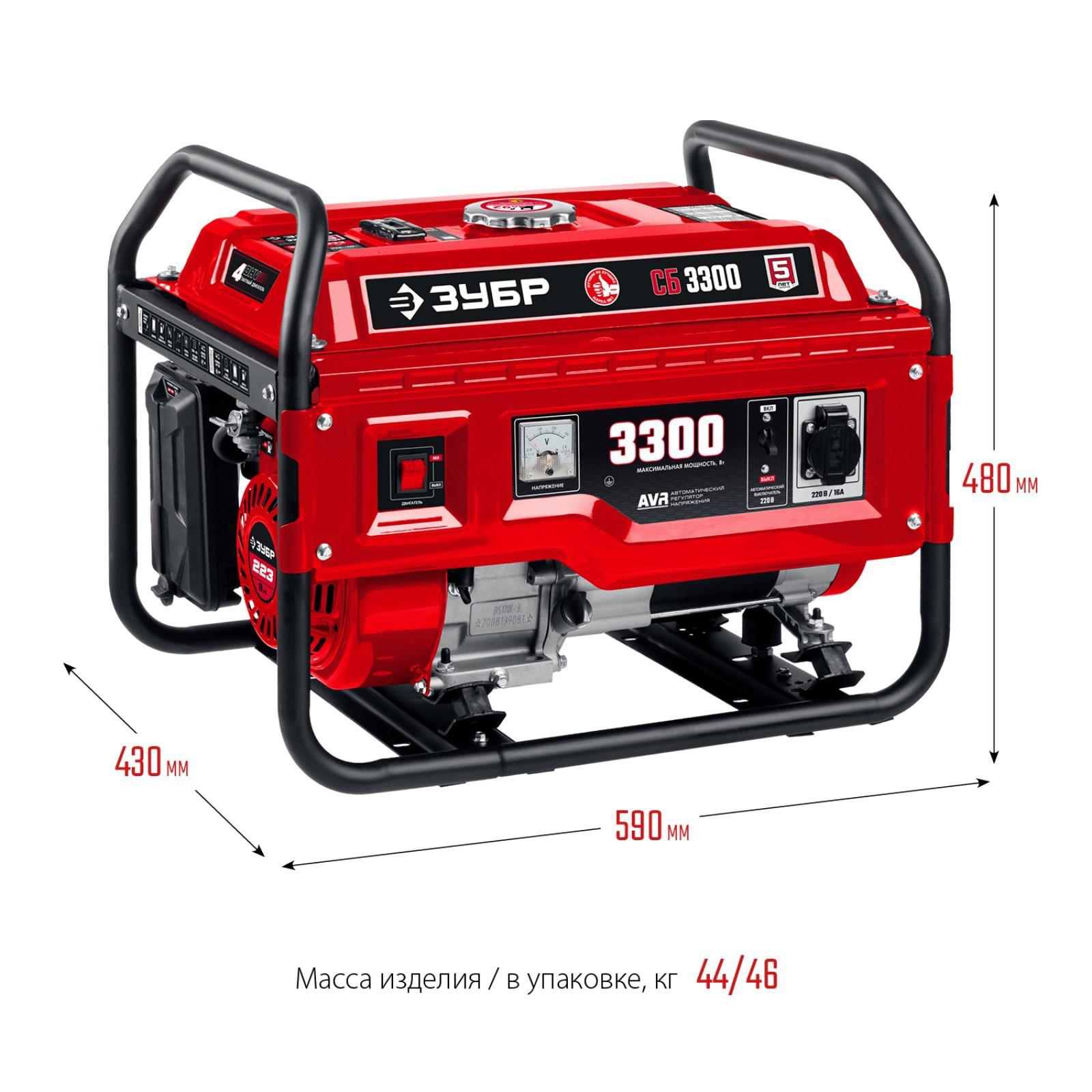 Генератор бензиновый ЗУБР СБ-3300, 4Т, 3300 Вт, 8 л.с., 2.1 л/ч, 220 В, ручной стартер