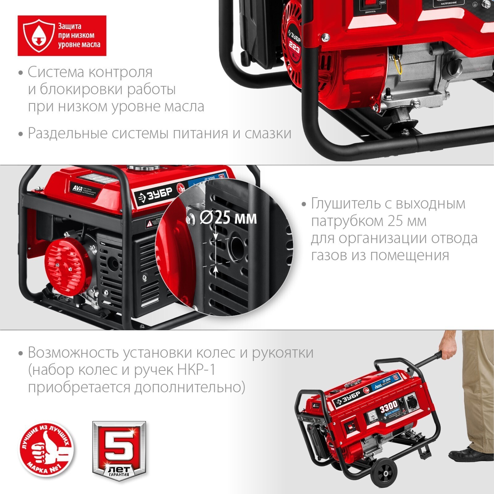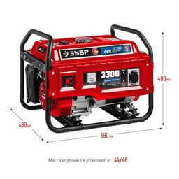 Генератор ЗУБР СГ-3300 (Аи-92/пропан,бутан), 3300 Вт, 12 В, 2х220 В, ручной стартер