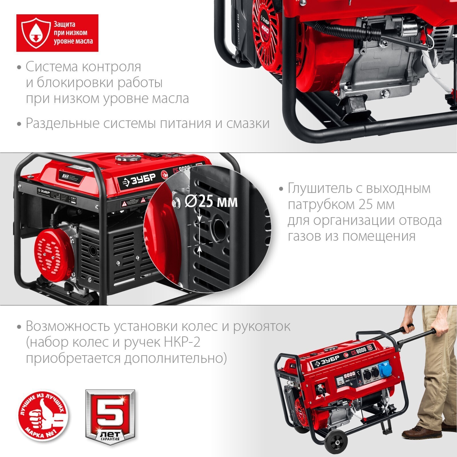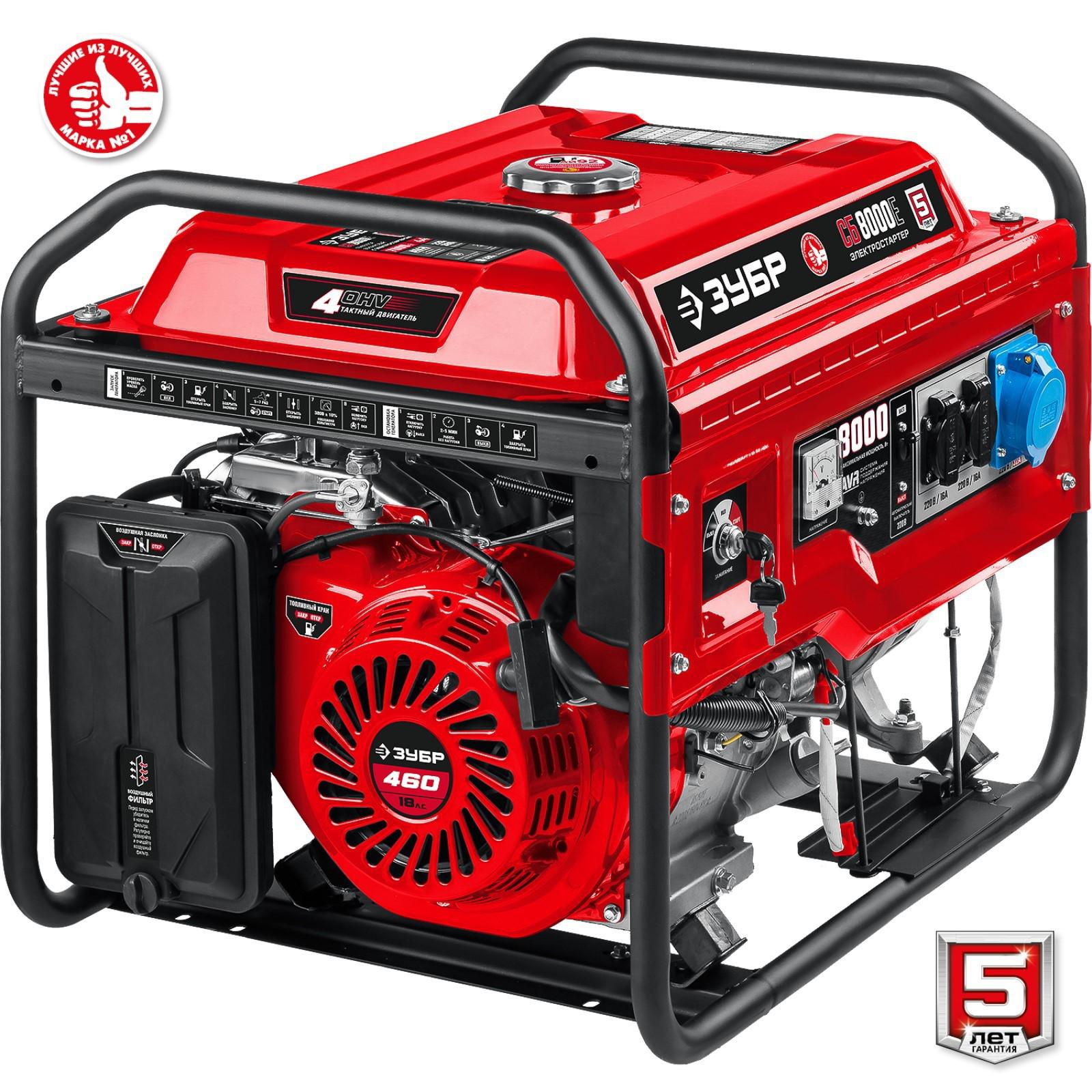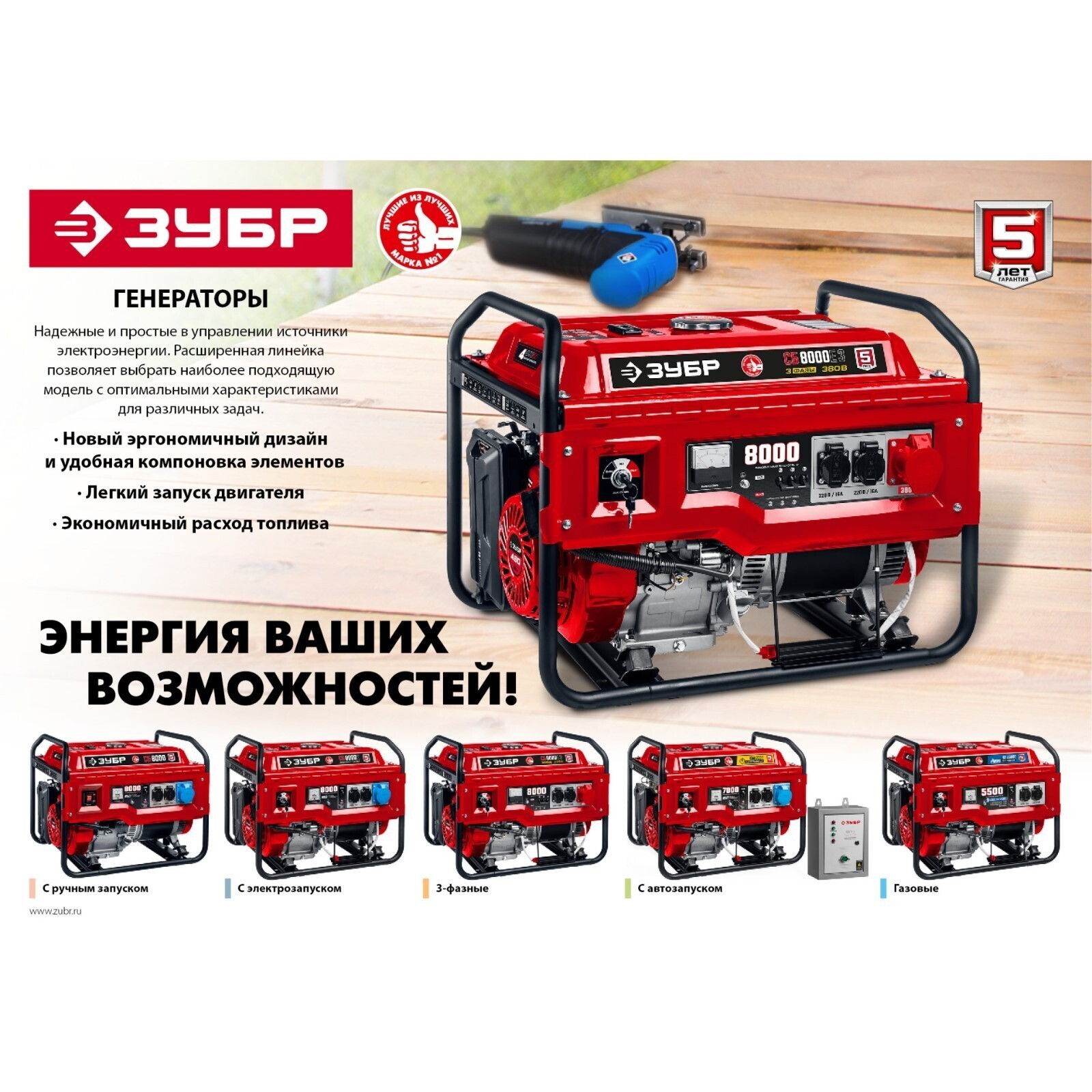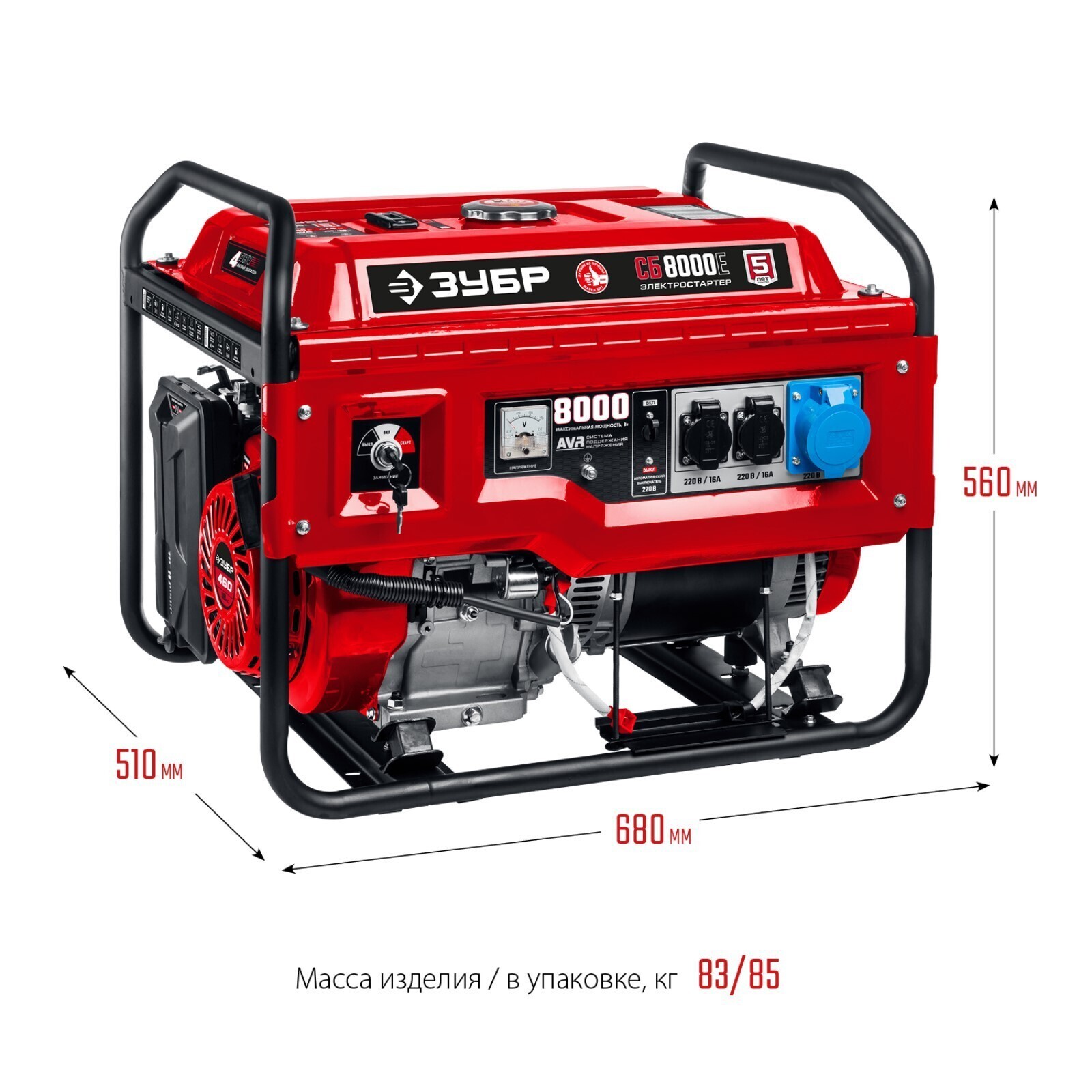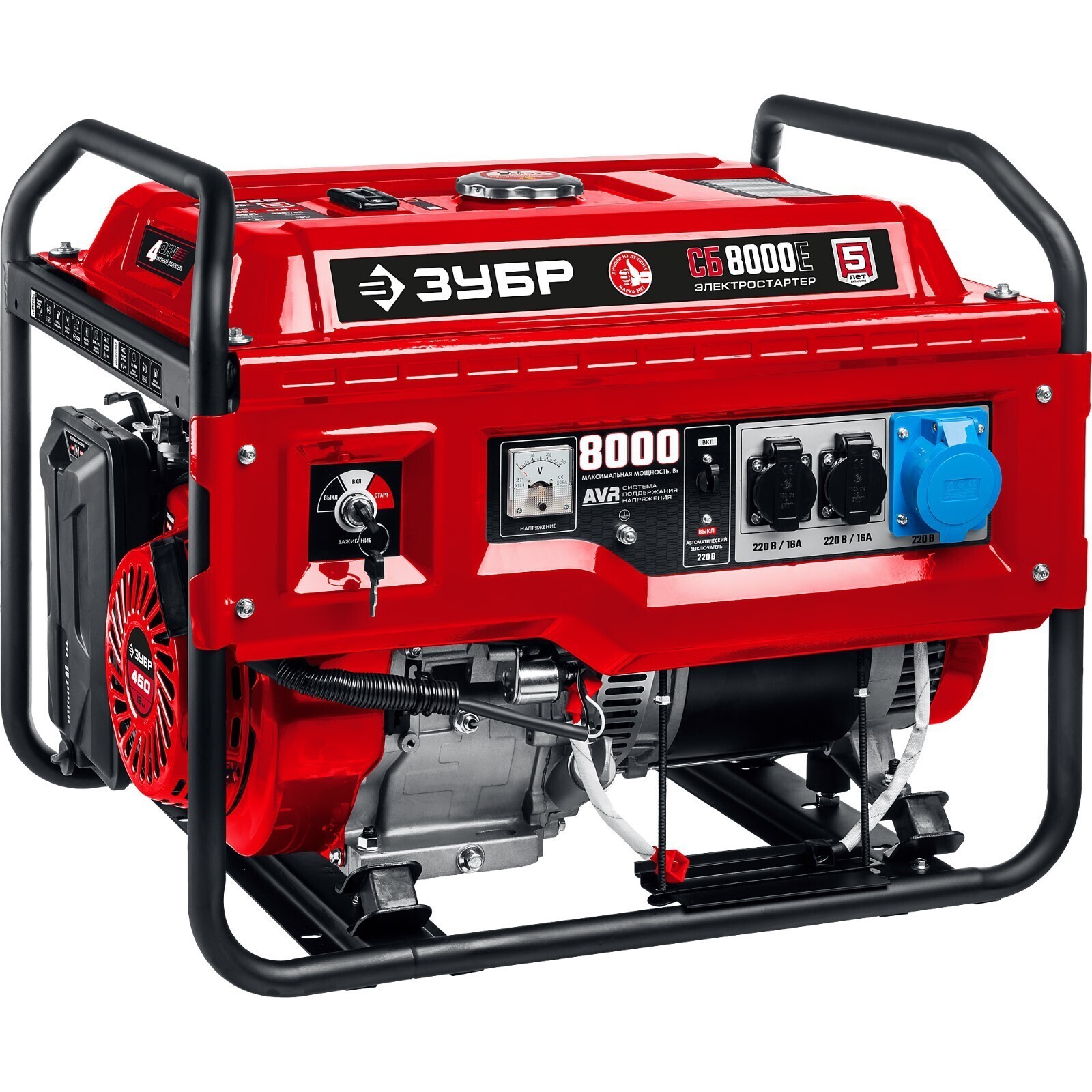Бензиновый генератор ЗУБР СБ-8000Е, 4Т, 8000 Вт, 18 л.с., 2х220 В/1-220 В-32А, электропуск