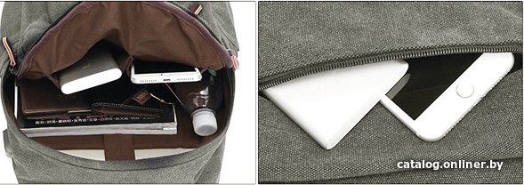 - Внешние карманы боковой, передний (фронтальный), на спинке