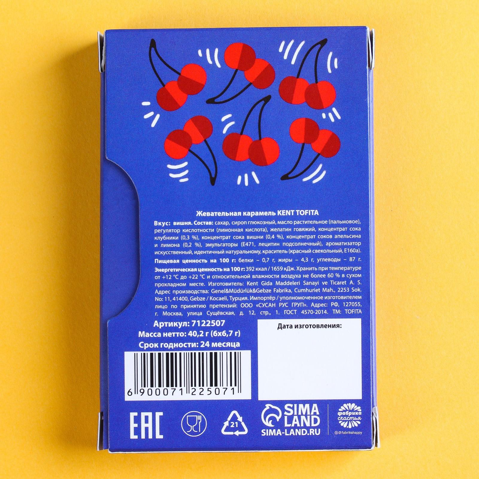 Жевательные конфеты «Не для тебя моя ягодка цвела», вкус: вишня, 40,2 г. (6 шт. х 6,7 г.)
