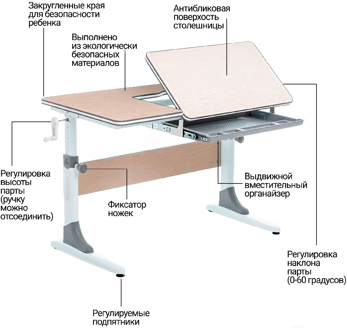 • Регулировка наклон столешницы, высота столешницы