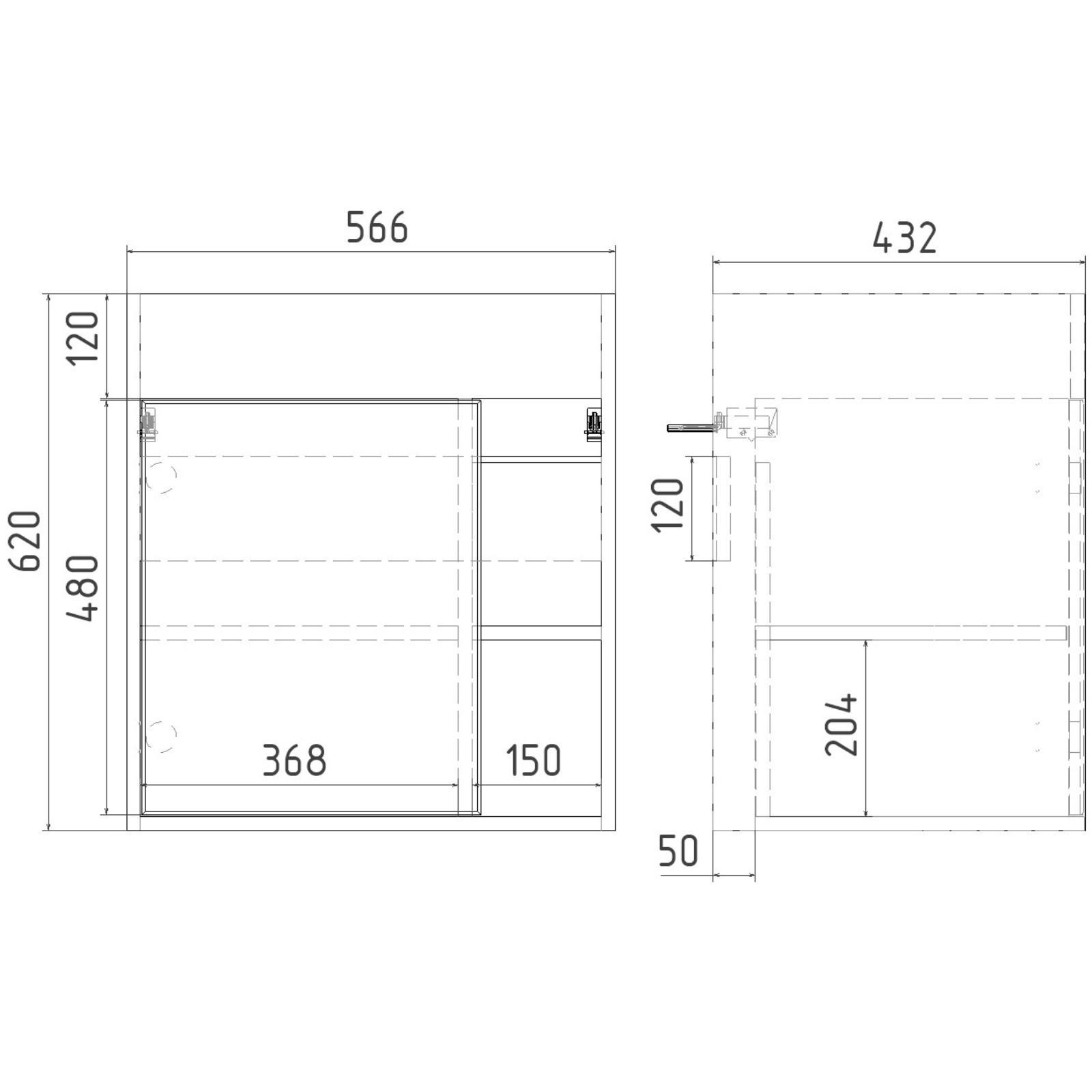 Тумба VIANT «Бостон» 1 створка, подвесная, 430х560х620 мм, с раковиной COMO 60
