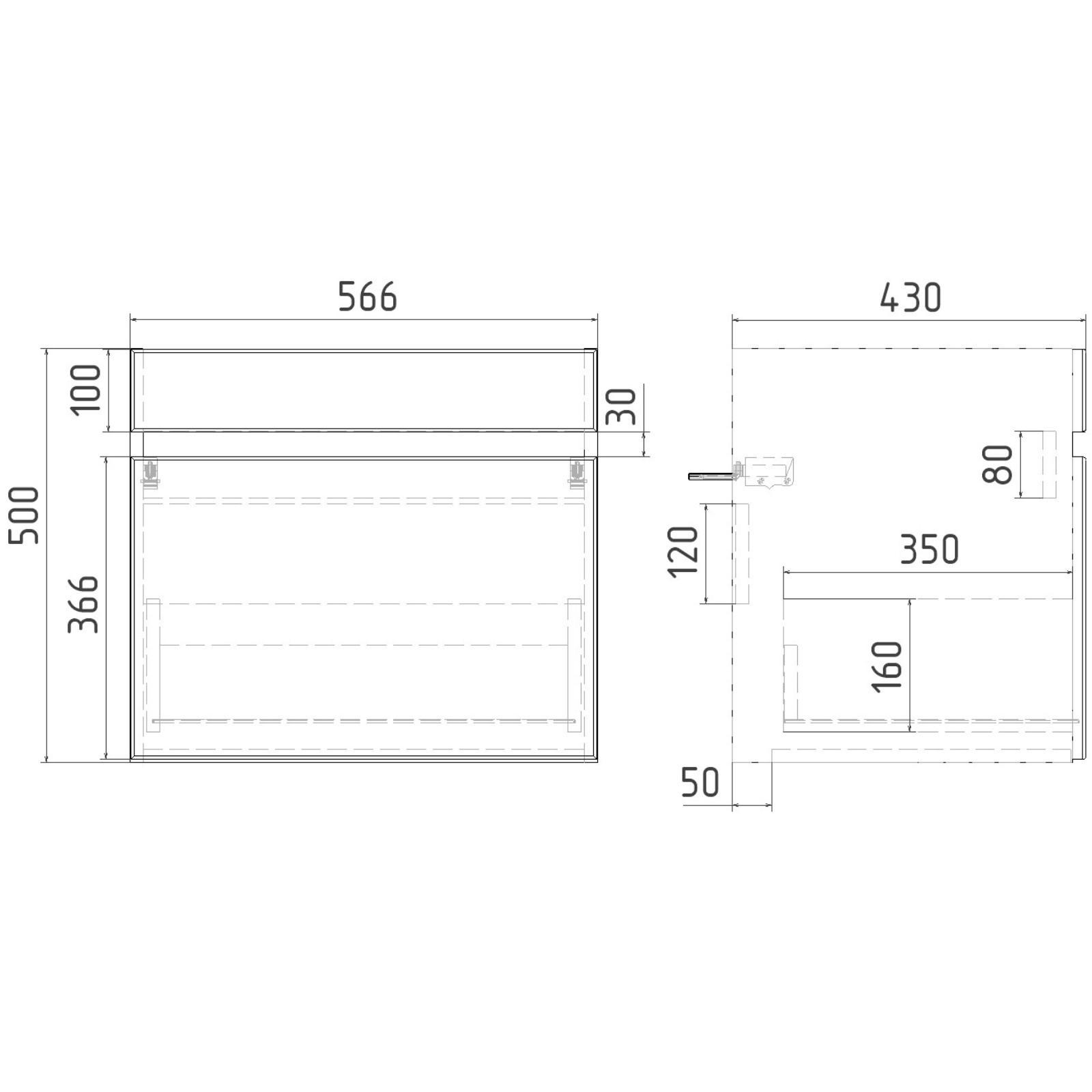 Тумба VIANT «Мальта» 1 ящик, подвесная, 430х560х500 мм, с раковиной COMO 60