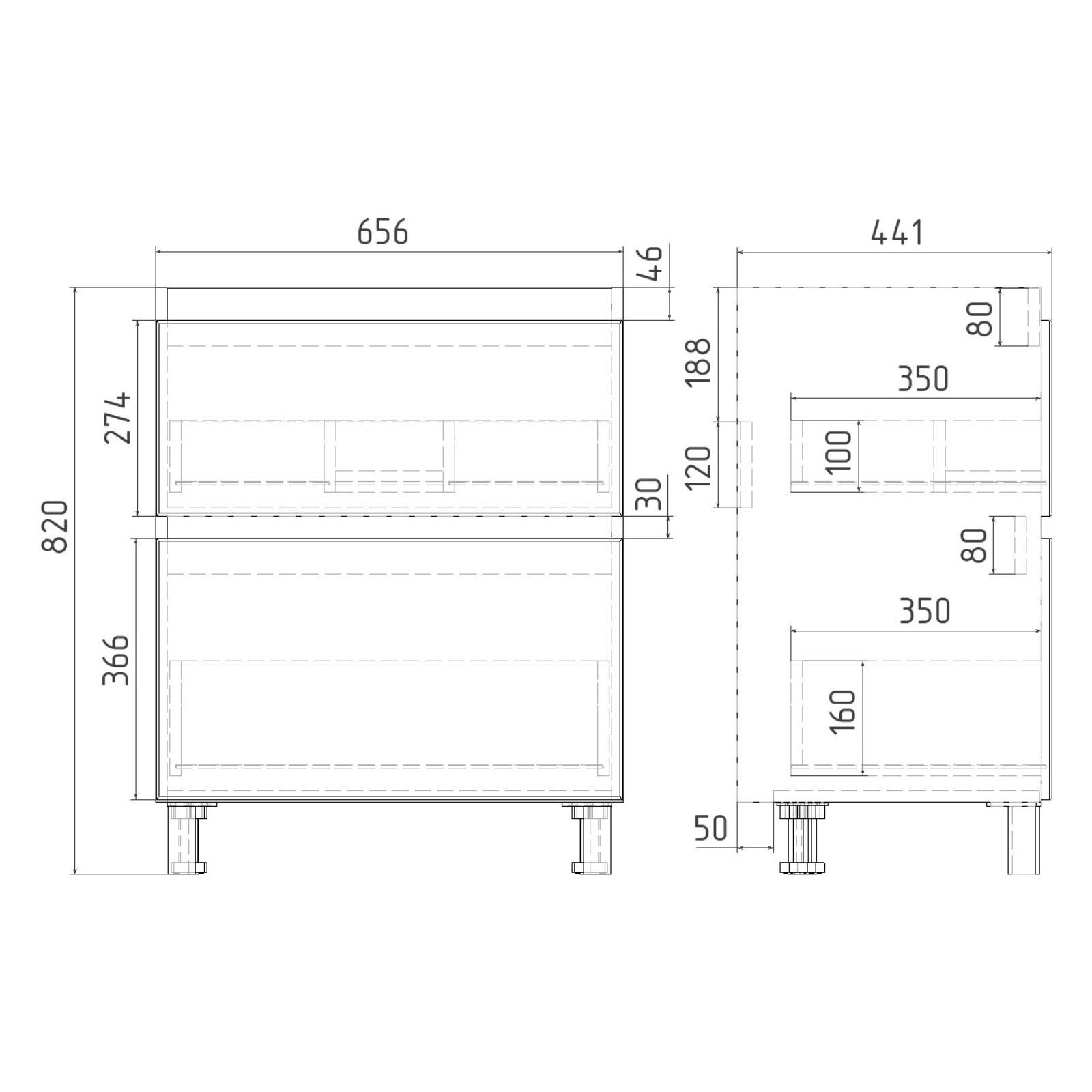 Тумба VIANT «Мальта» 2 ящика, 425х655х820 мм, с раковиной COMO 70