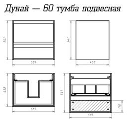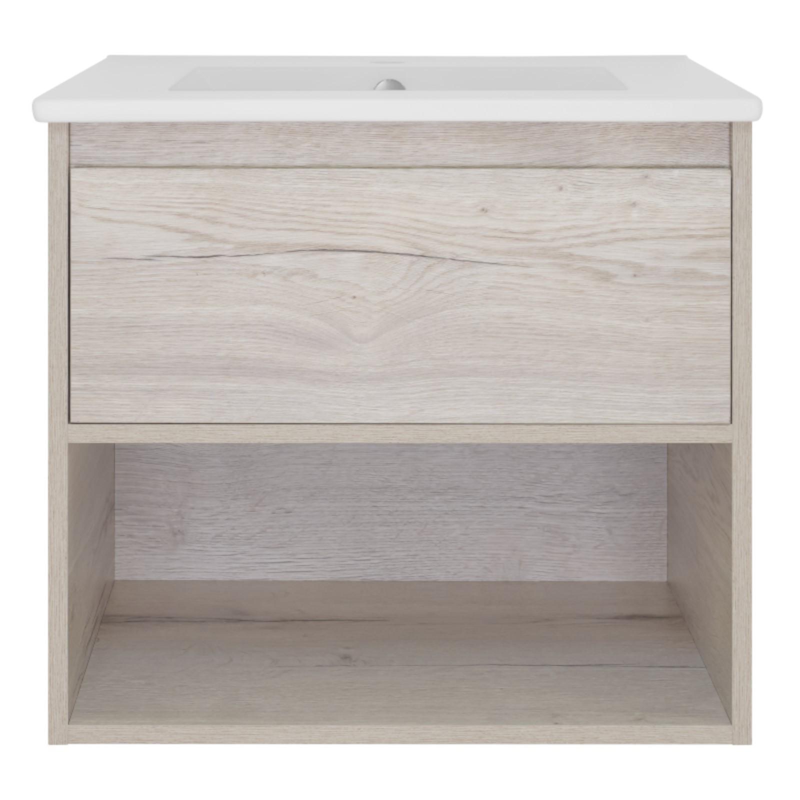 Тумба Дунай - 60 подвесная с 1 ящиком и нишей (цвет Дуб белый) с раковиной Quadro 60